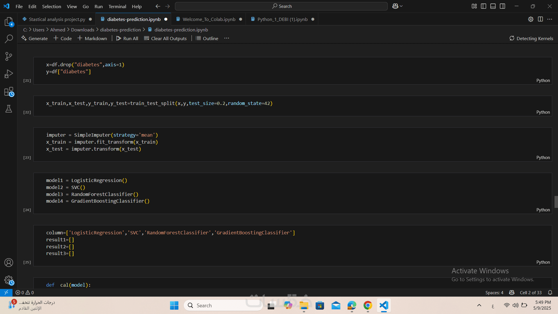 بناء نموذج تنبؤي احترافي للكشف المبكر عن مرض السكر باستخدام