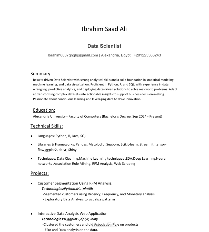 تصميم سيرة ذاتية احترافية Cv متوافقة مع أنظمة الـATS
