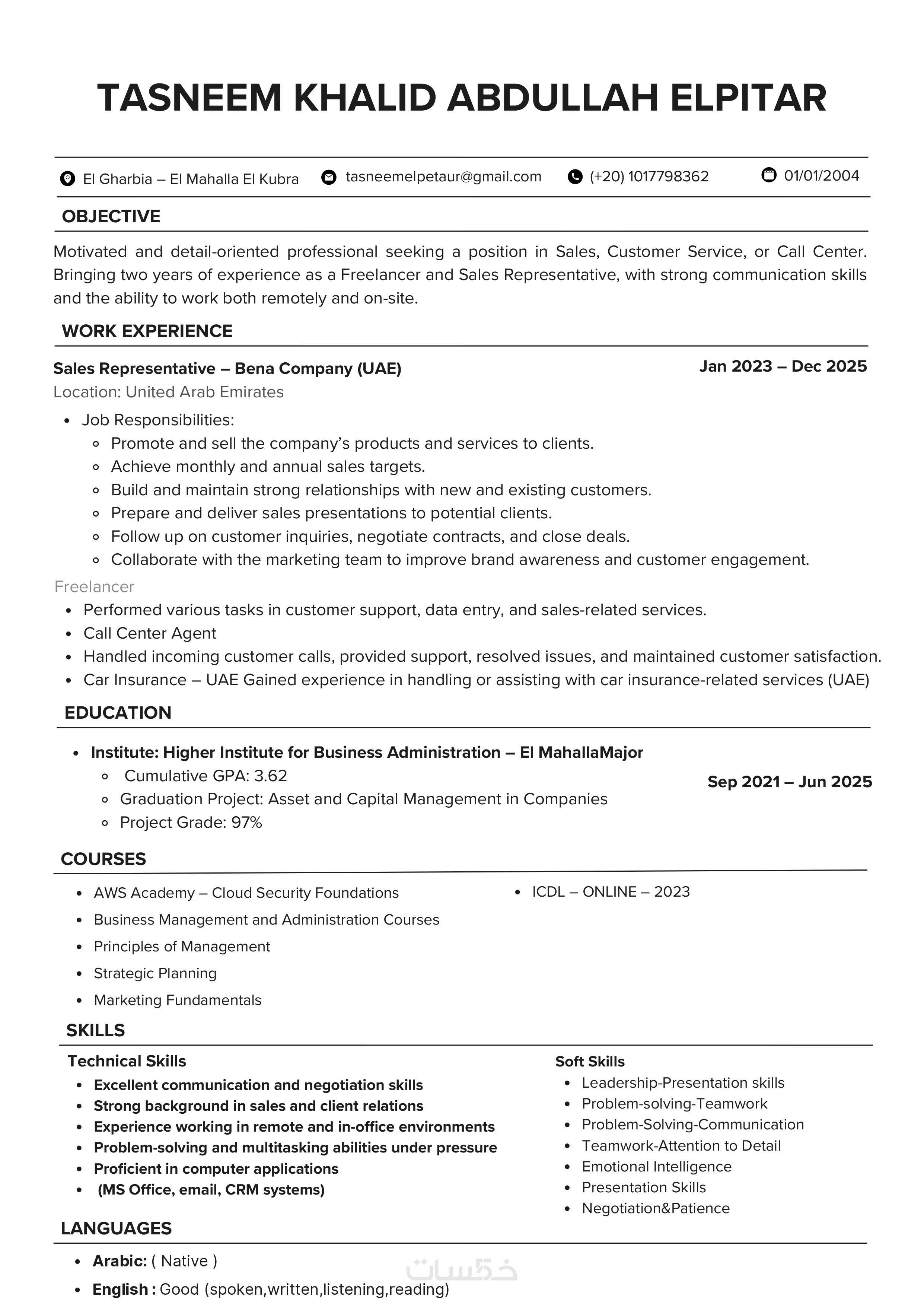 تصميم سيرة ذاتية احترافية متوافقة مع أنظمة "EN_AR "ATS
