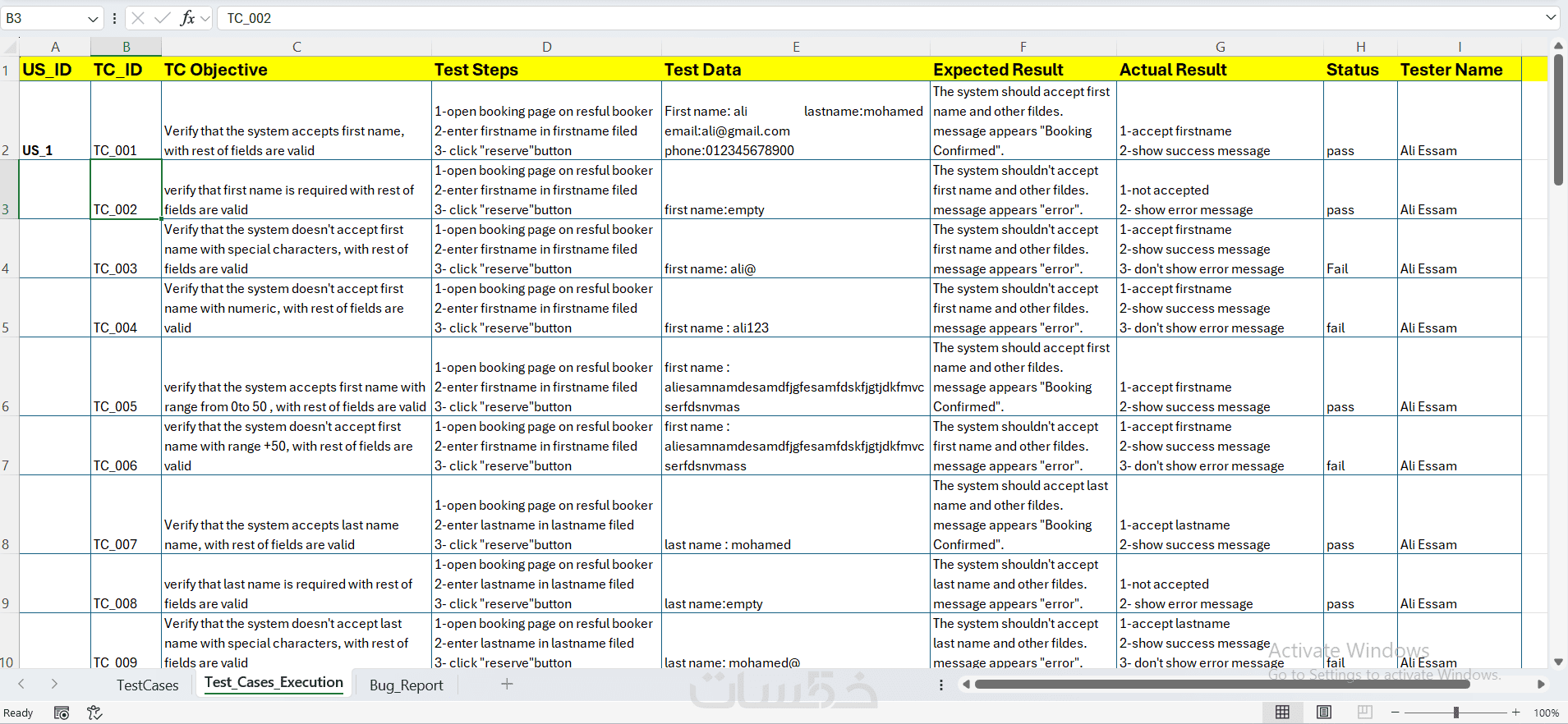 اختبار يدوي وRegression للتطبيقات مع Test Cases وBug Report