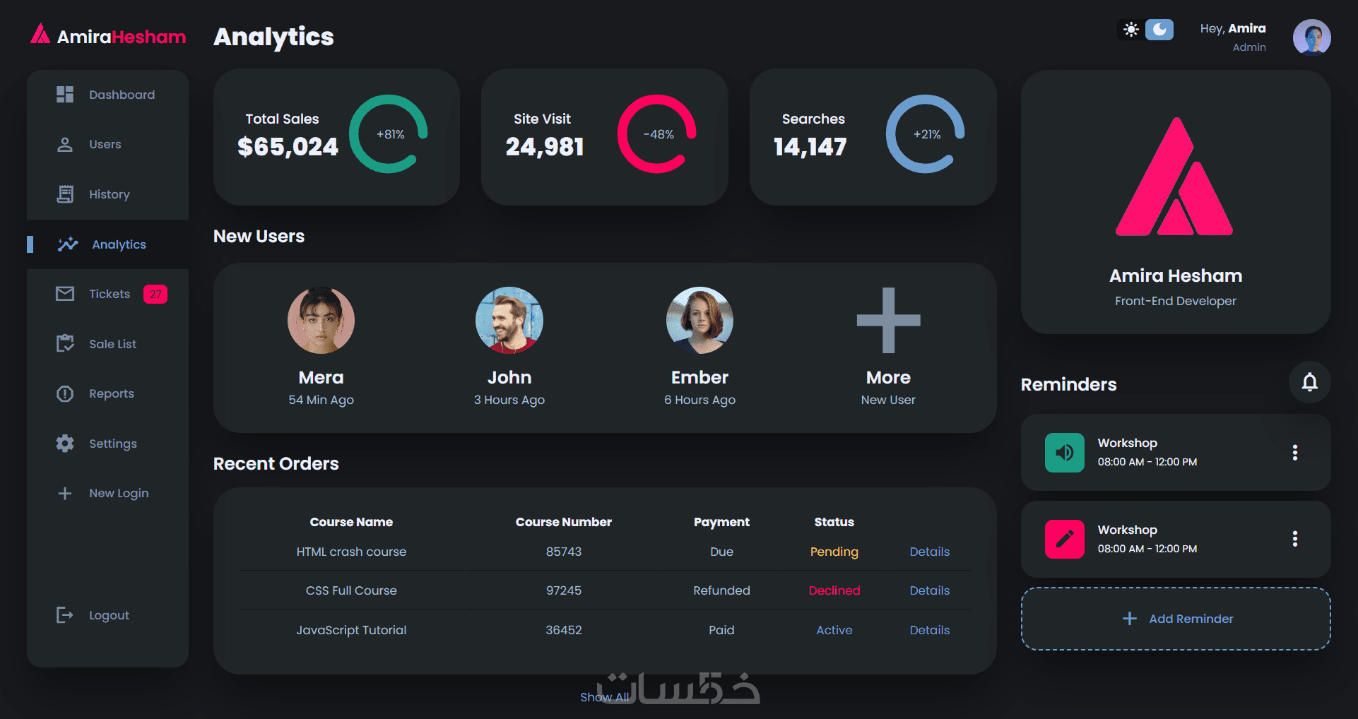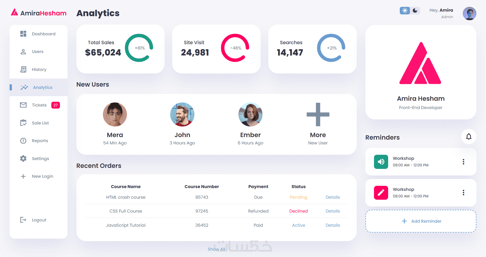 Admin Dashboard | لوحة تحكم إدارية تفاعلية وحديثة