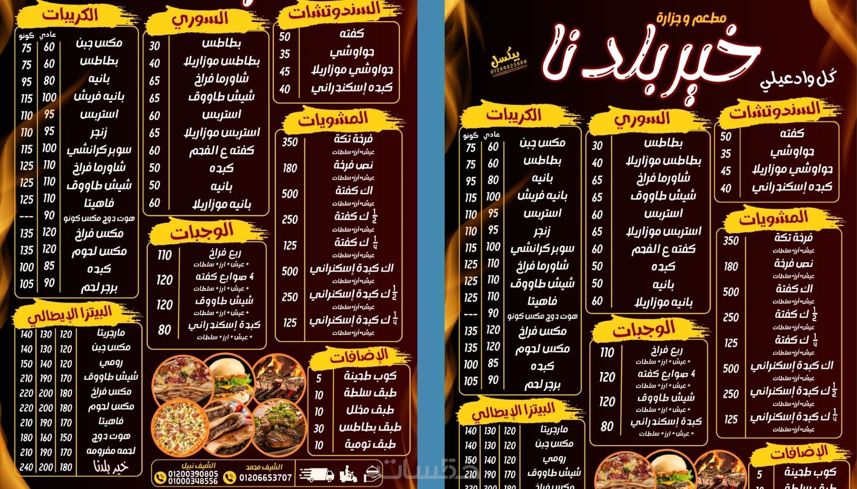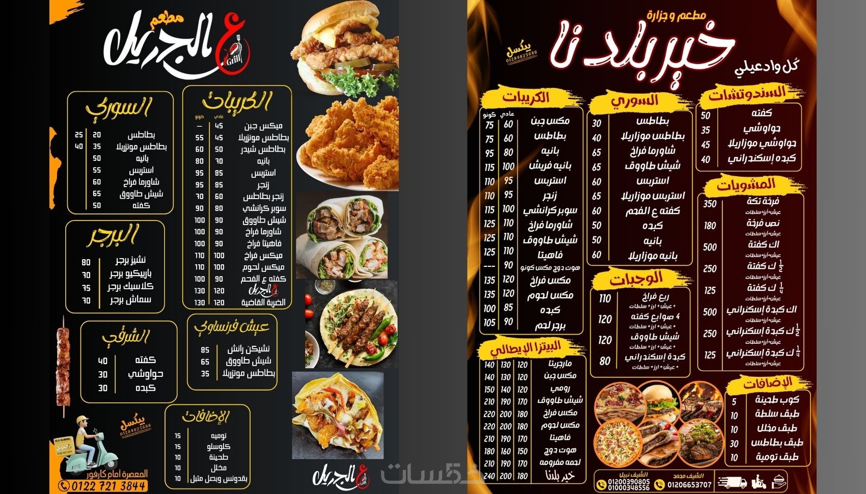 تصميم منيو فاست فود / كافيتيريا / مطعم / كراب menu design