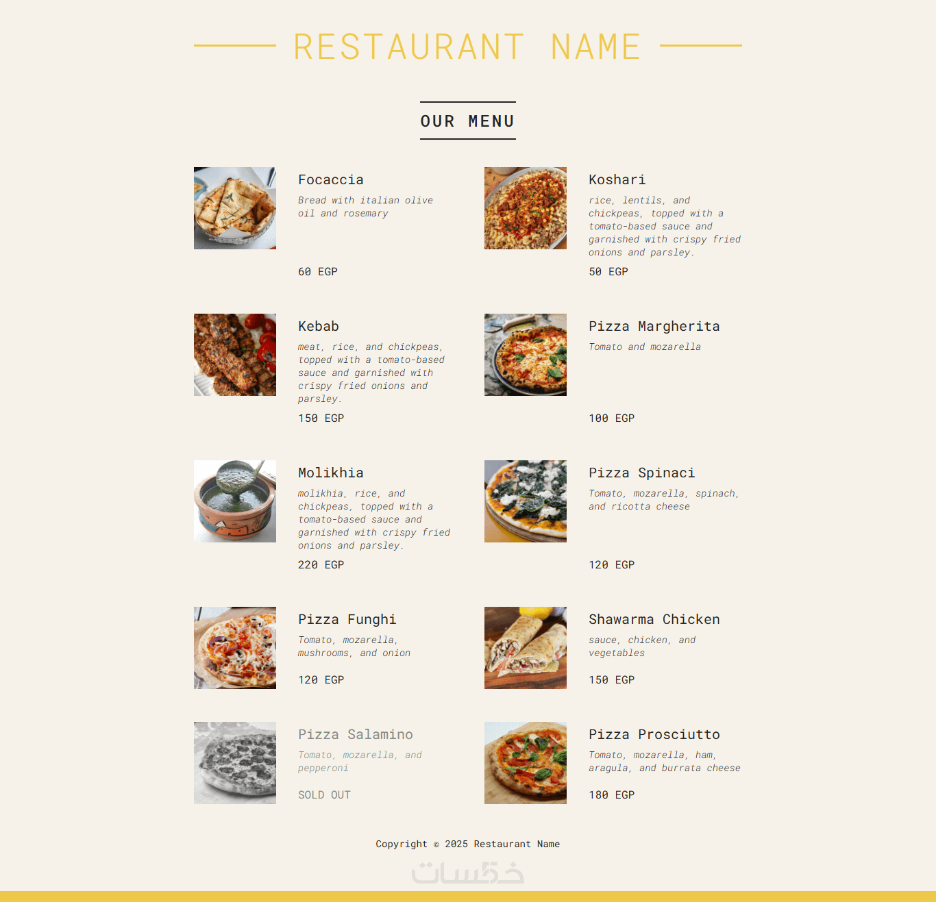 تصميم موقع إلكتروني لعرض قائمة الطعام Menu لمطعمك أو مشروع