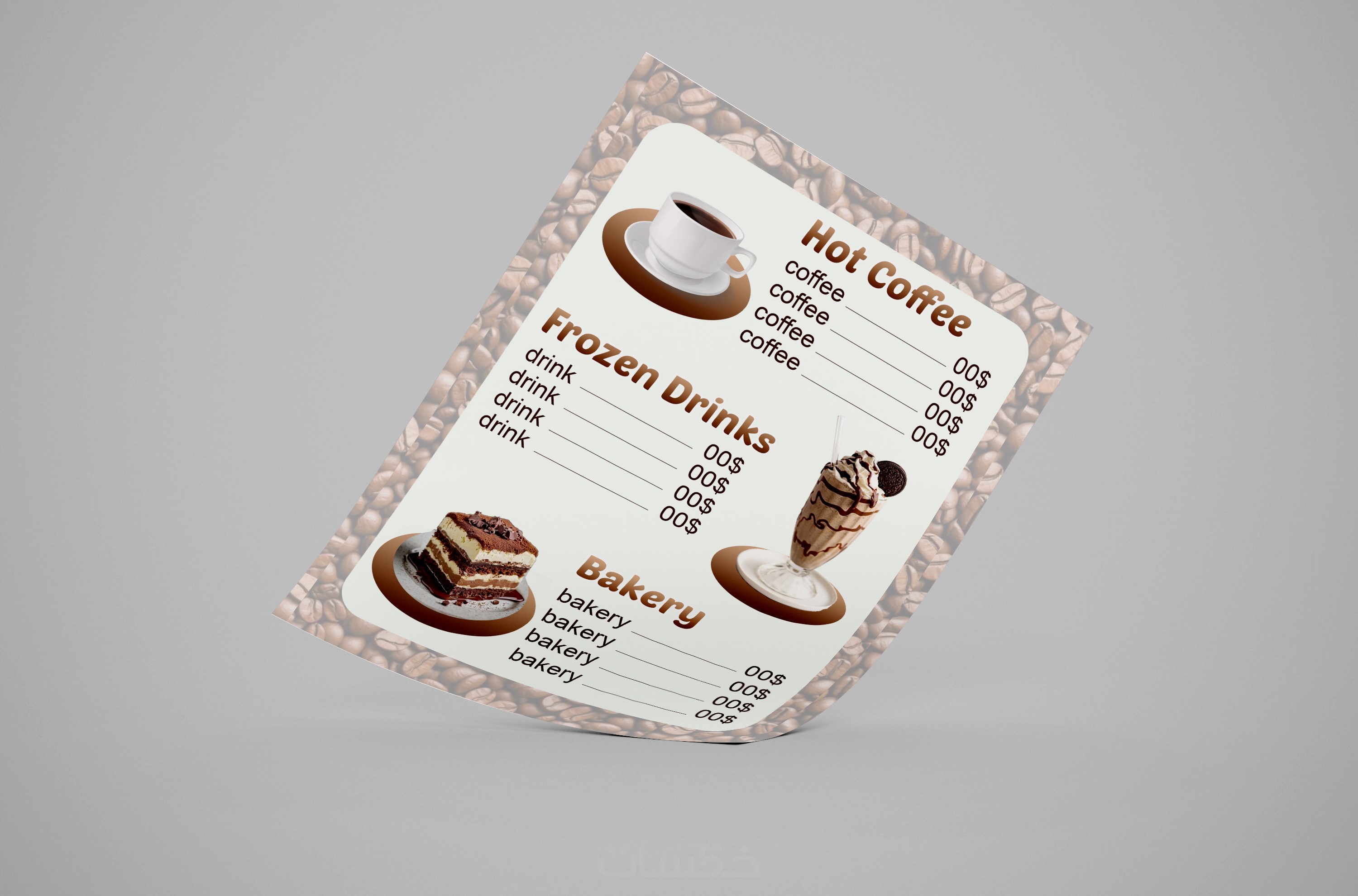 منيو Menu مطاعم أو كوفى شوب جاهز للطبع