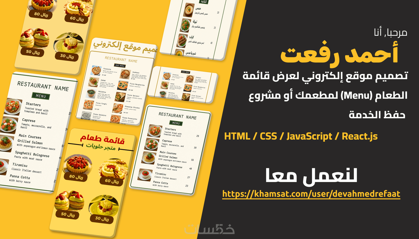 تصميم منيو مطعم أونلاين بQR Code جاهز للعملاء