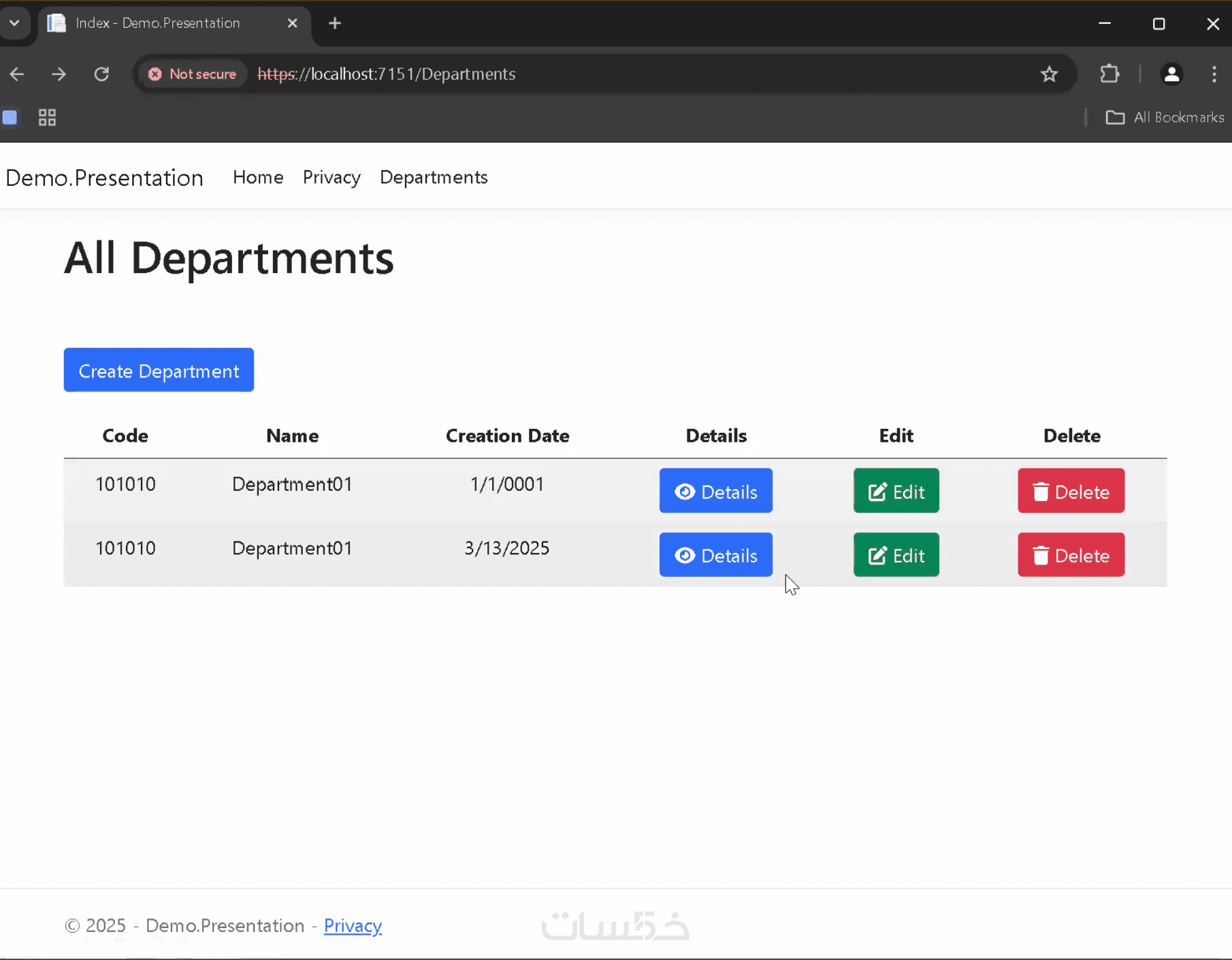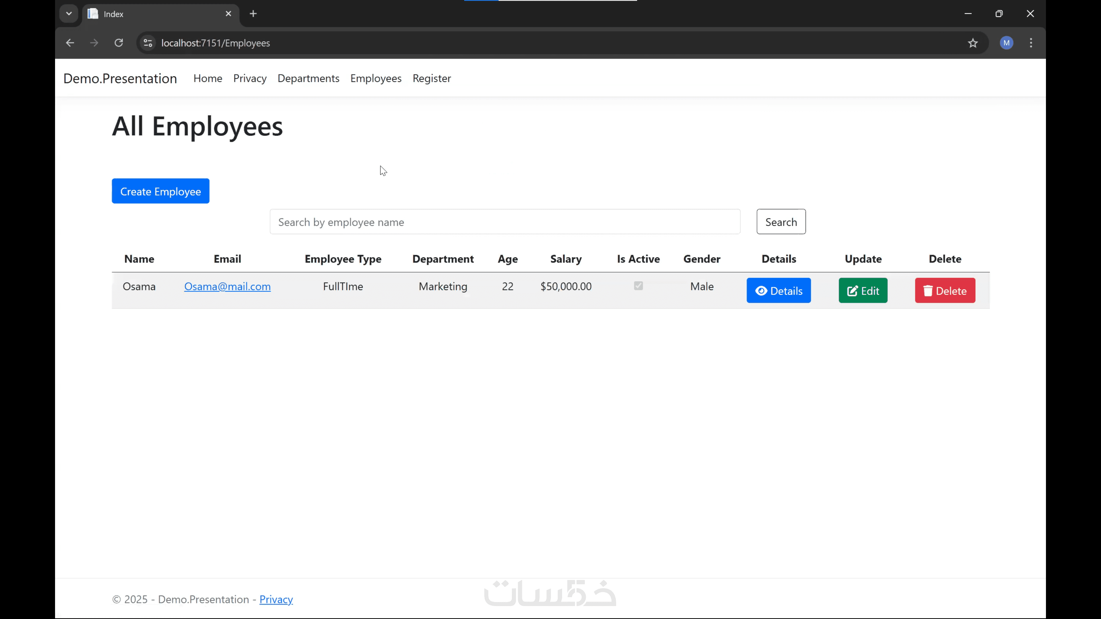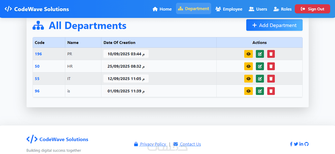 تطوير تطبيق ASP.NET MVC لإدارة الموظفين والأقسام وعرض تفاصيل