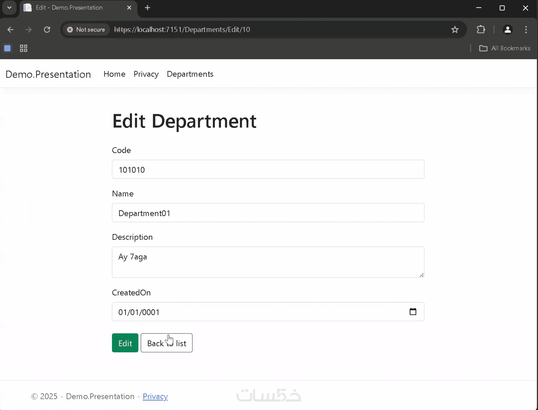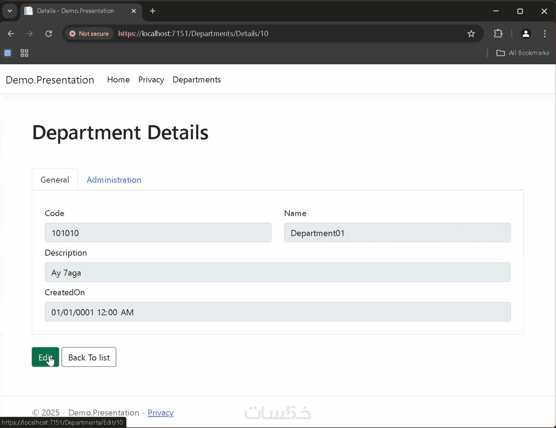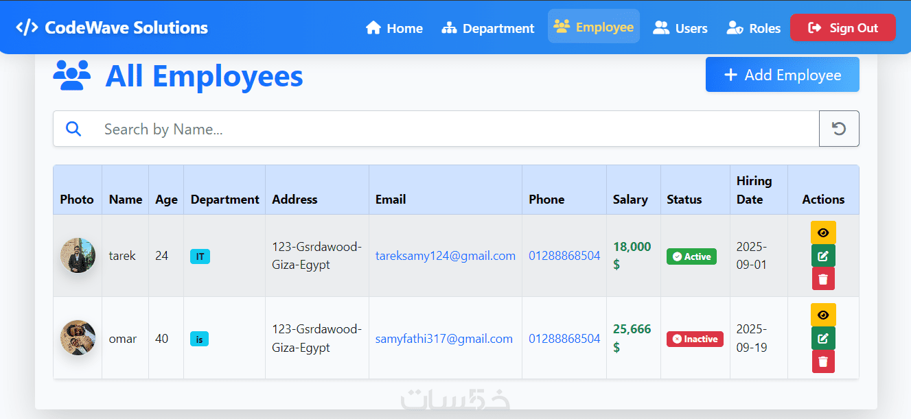 تطوير تطبيق ASP.NET MVC لإدارة الموظفين والأقسام وعرض تفاصيل