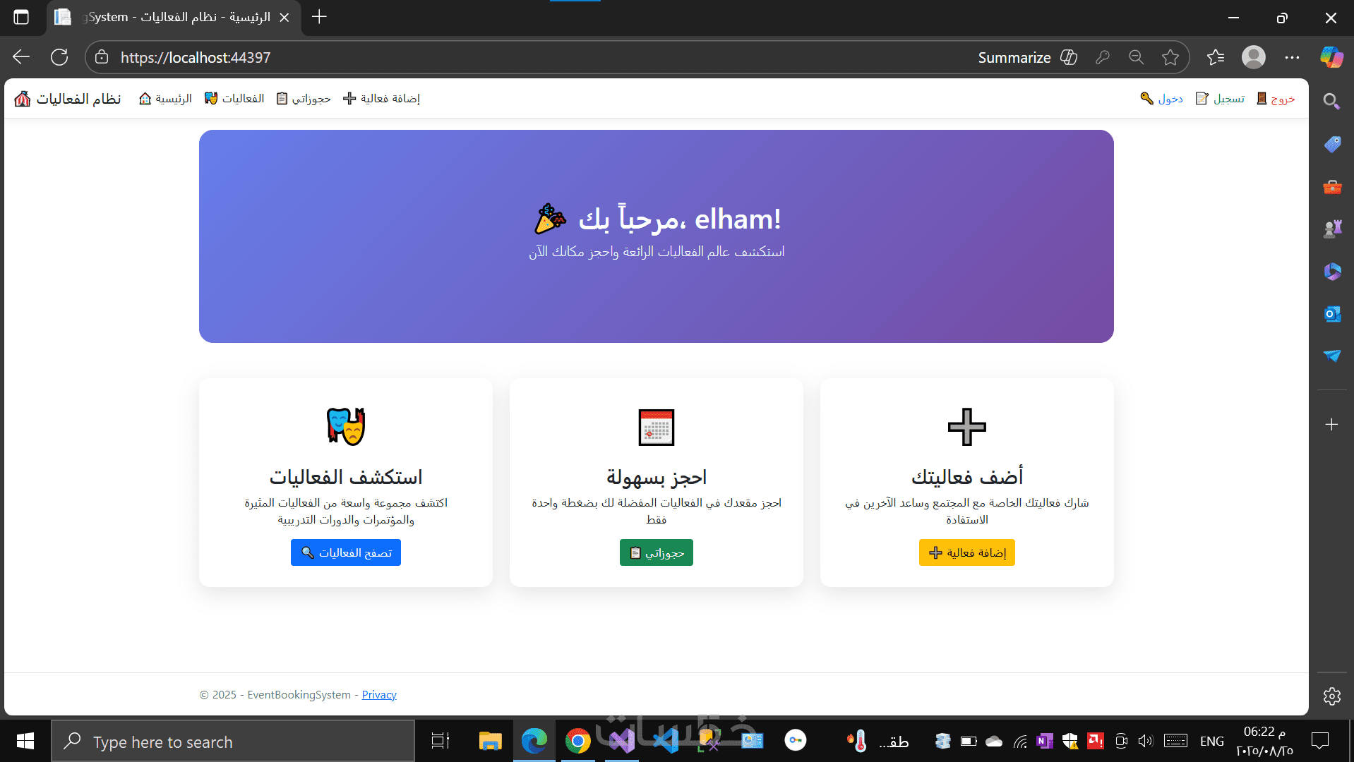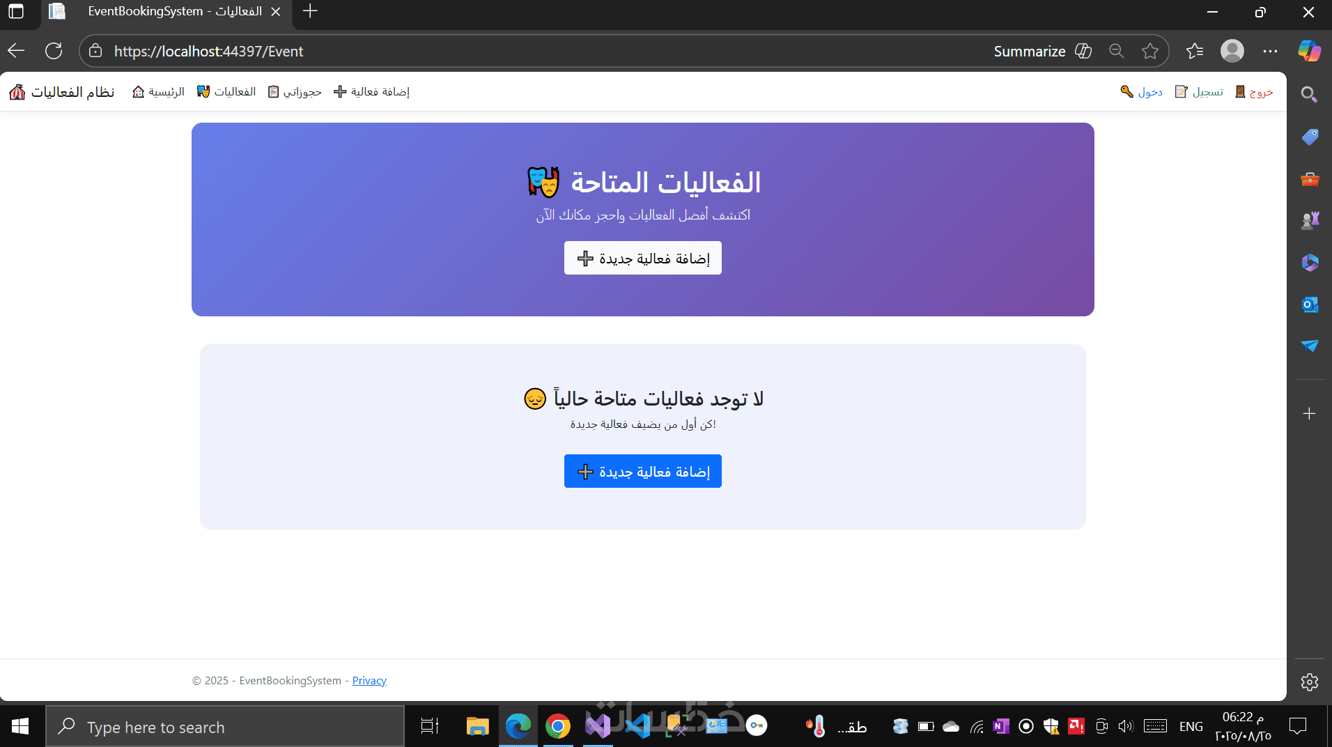 تطوير نظام حجز الفعاليات متكامل باستخدام ASP.NET Core MVC