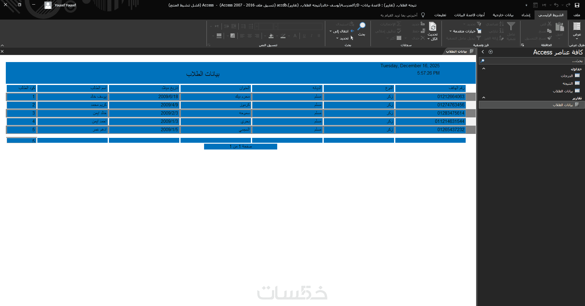 تصميم قاعدة بيانات Access مع النماذج والتقارير الإحترافية