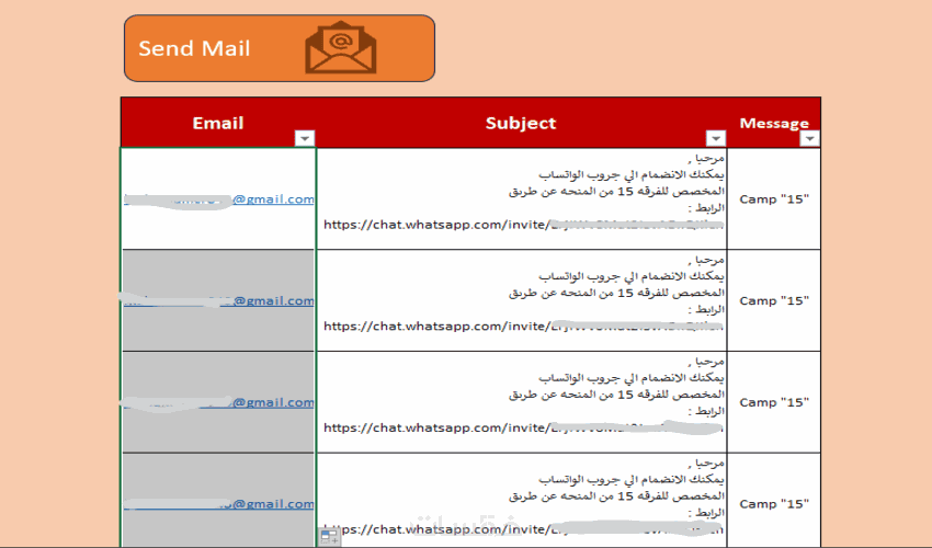 ارسال رسائل واتساب أو ايميل باستخدام اكسيل -Excel