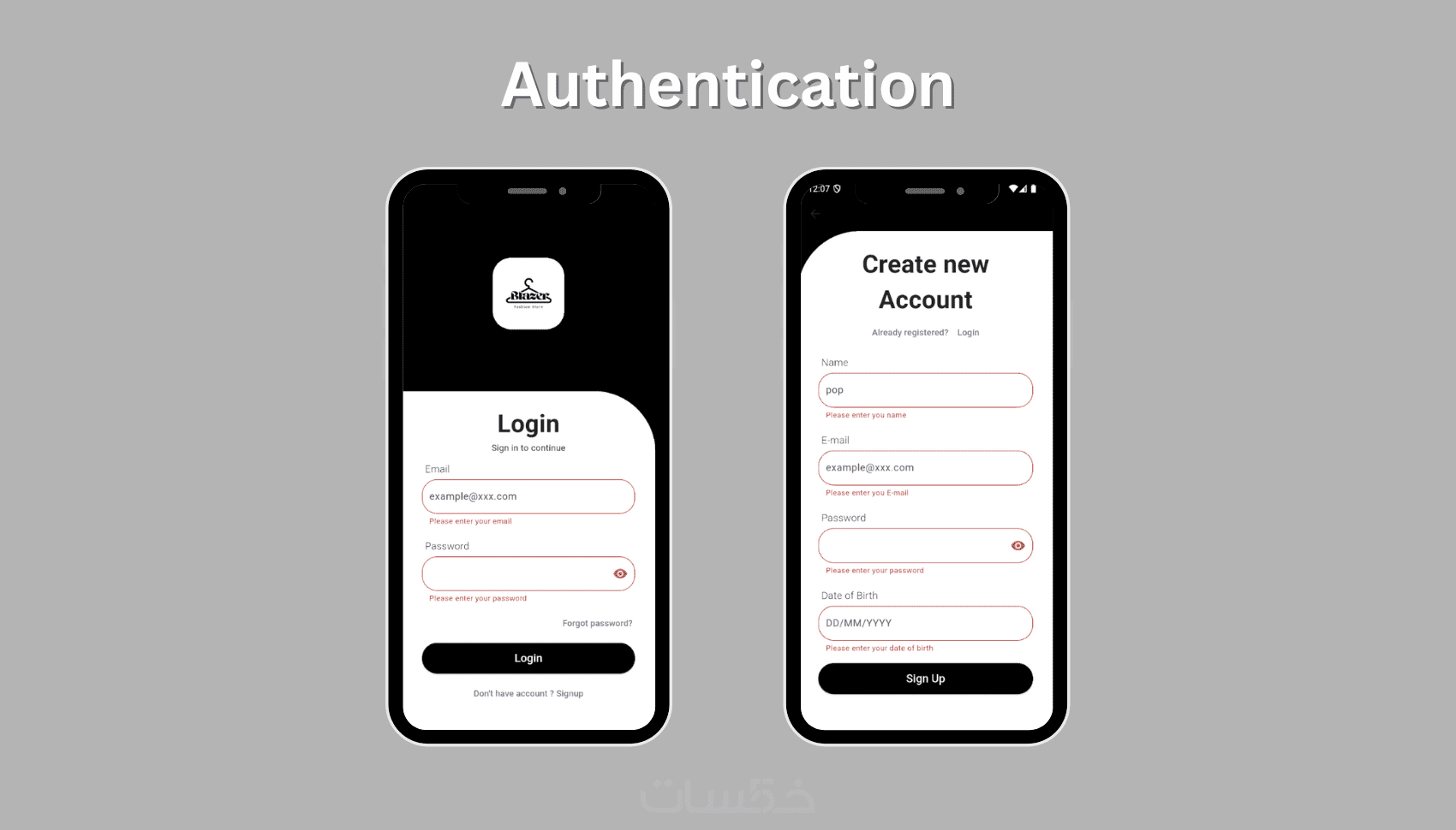 تصميم وتطوير شاشة التسجيل و تسجيل دخول للتطبيق الخاص بك