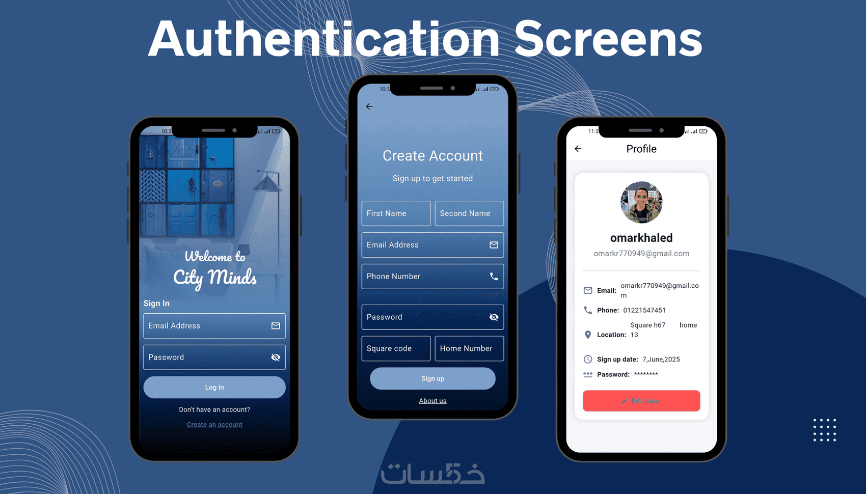 إنشاء شاشات Authentication كاملة (Login/Signup/Forgot Pass)