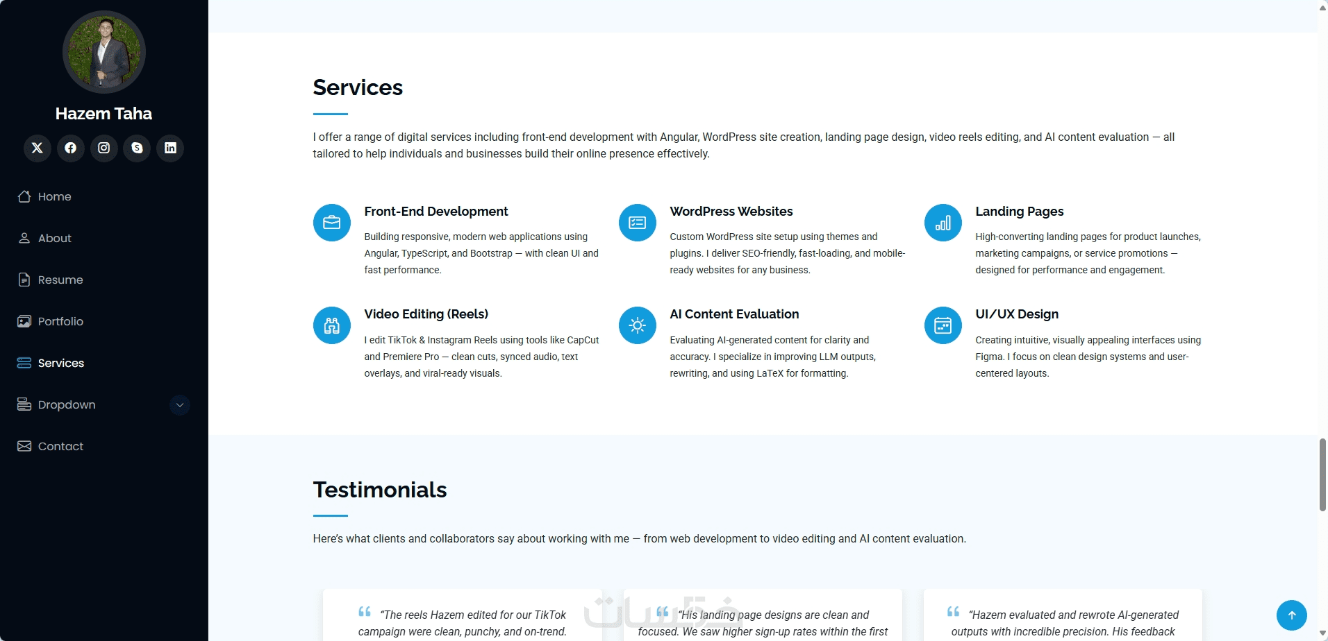 تصميم صفحة بورتفوليو portfolio احترافية حسب الطلب