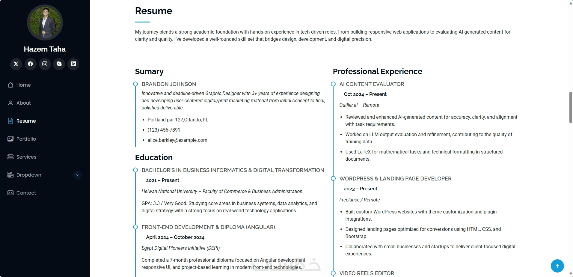 تصميم صفحة تعريف شخصية إلكترونية Portfolio