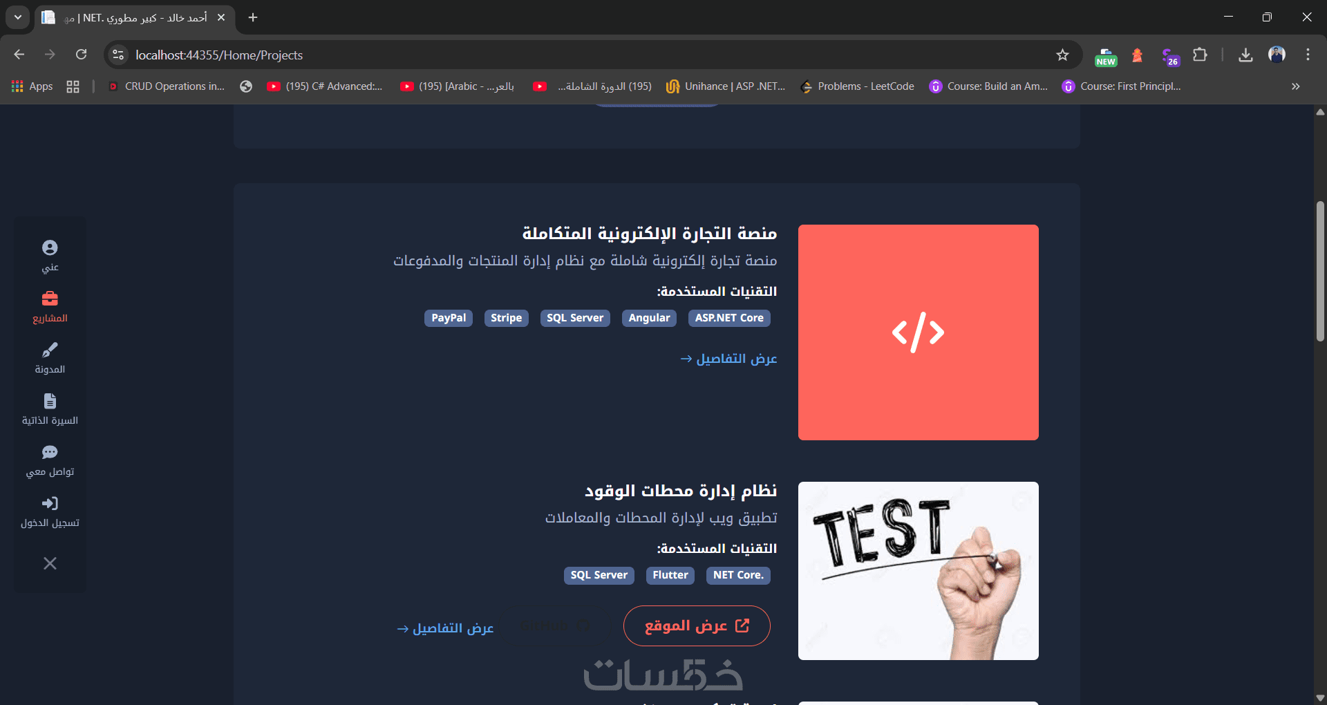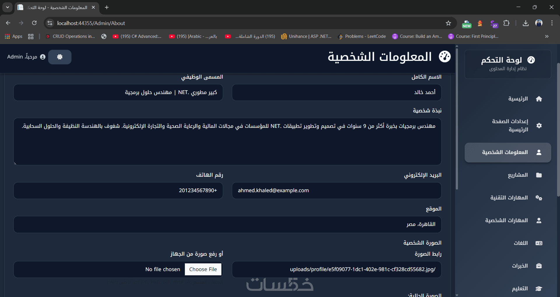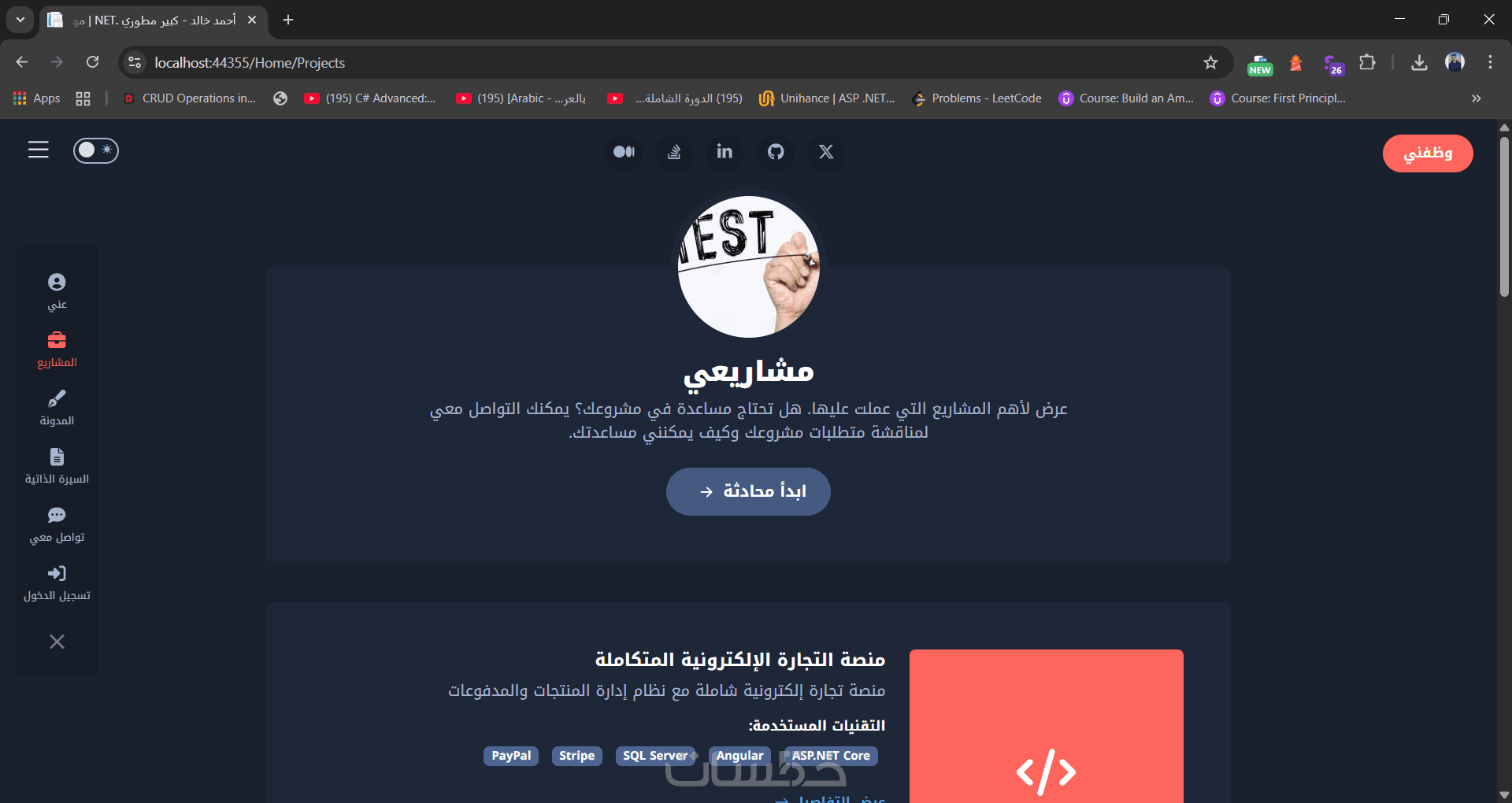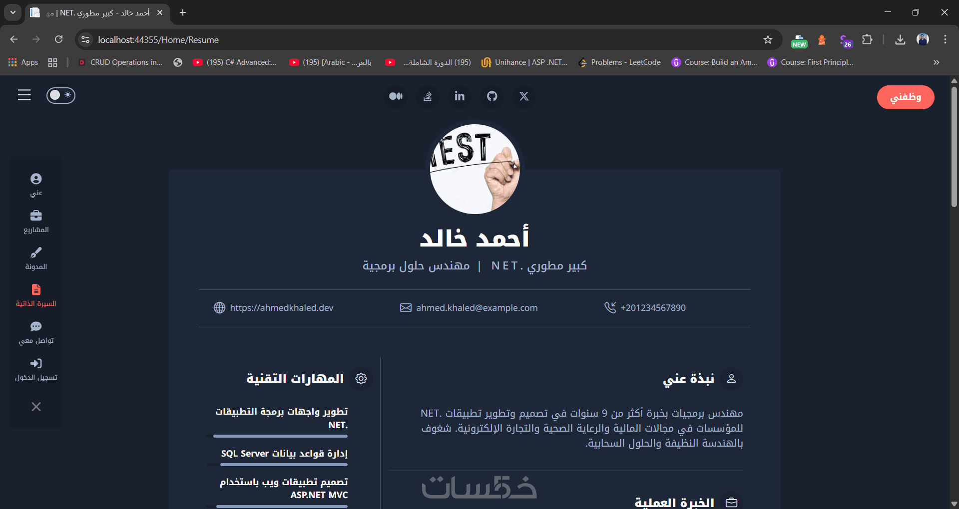 Portfolio Pro تصميم موقع شخصي وداشبورد للتحكم الكامل