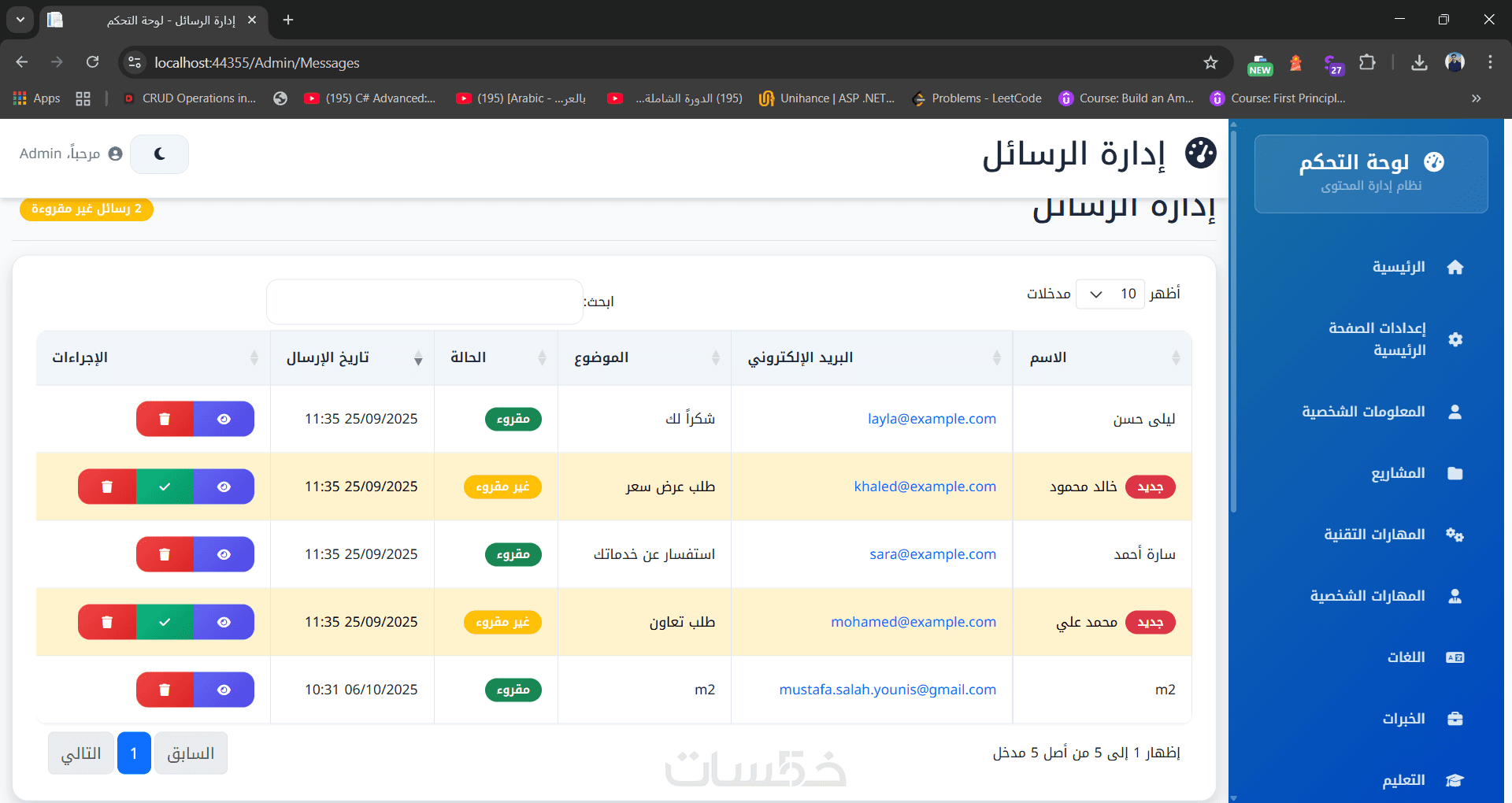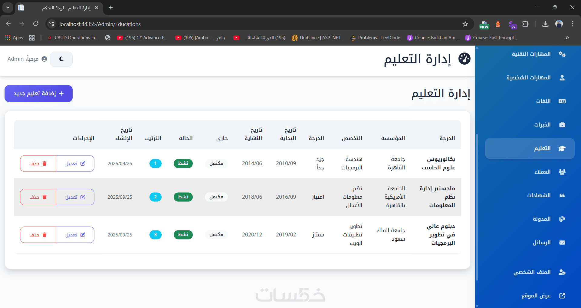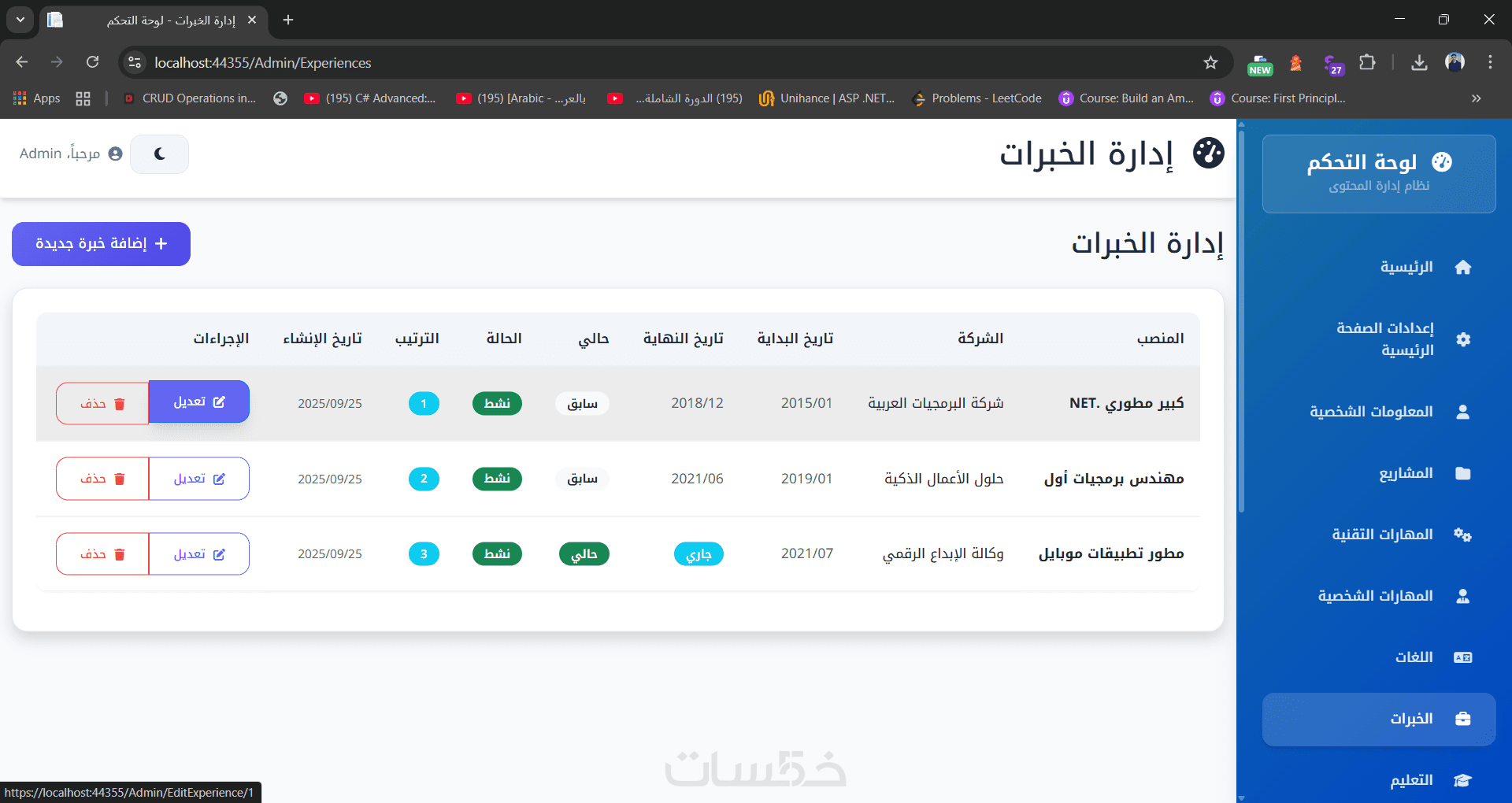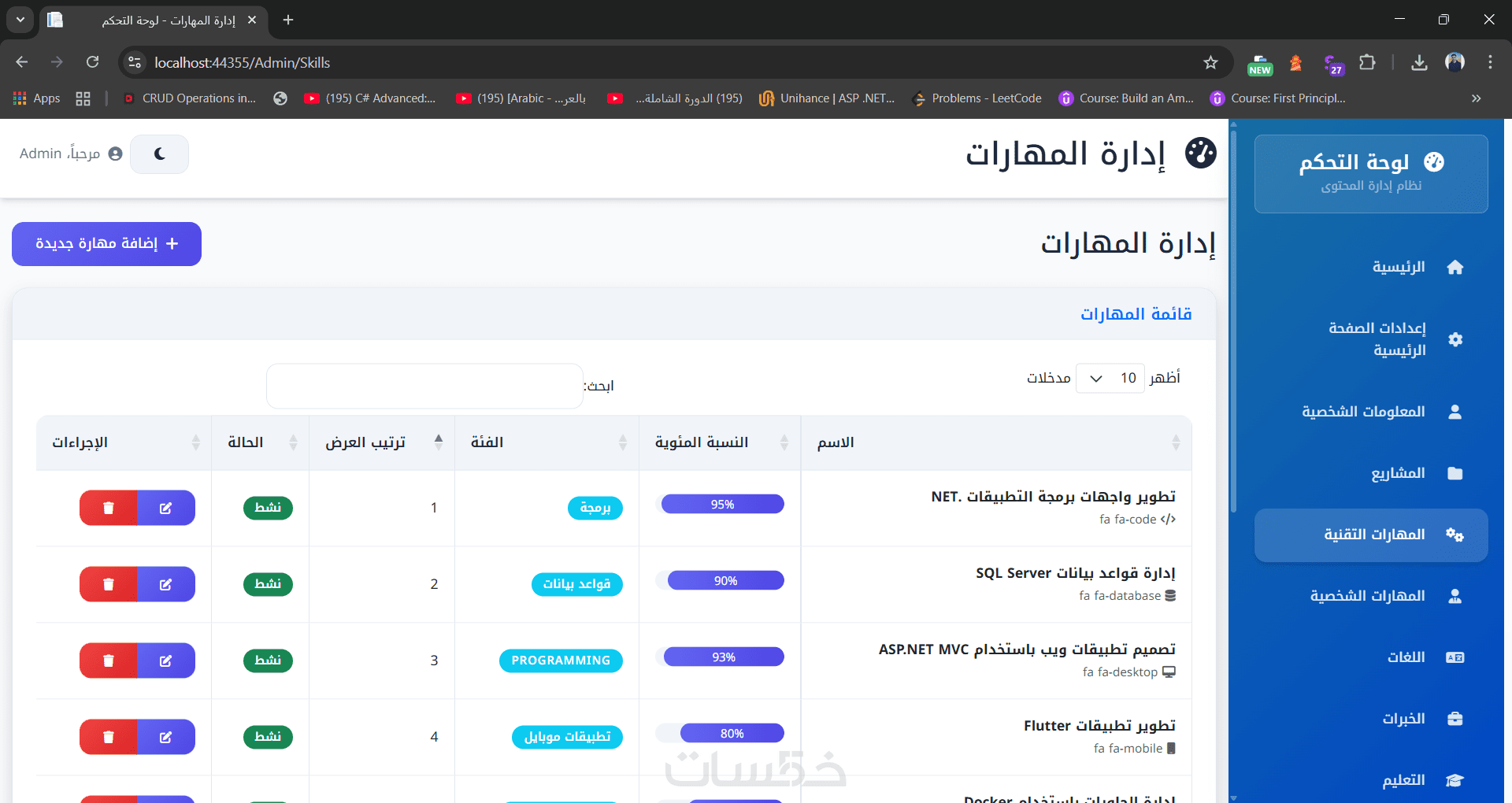 Portfolio Pro تصميم موقع شخصي وداشبورد للتحكم الكامل