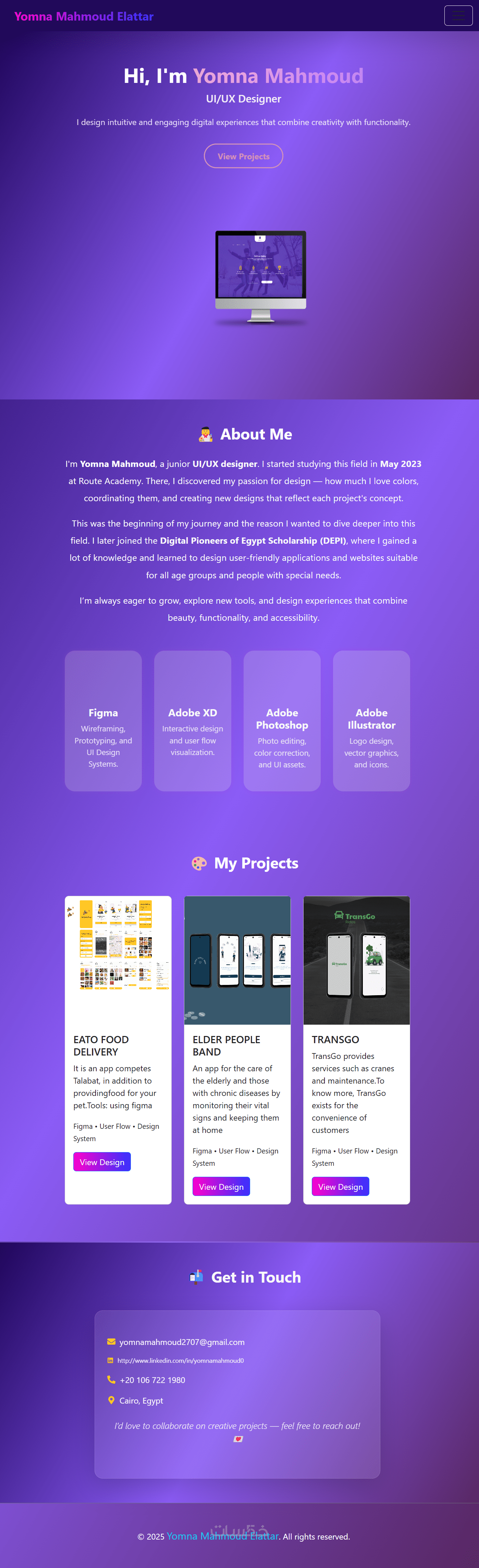 تصميم وتطوير صفحة Portfolio متجاوبة وجذابة