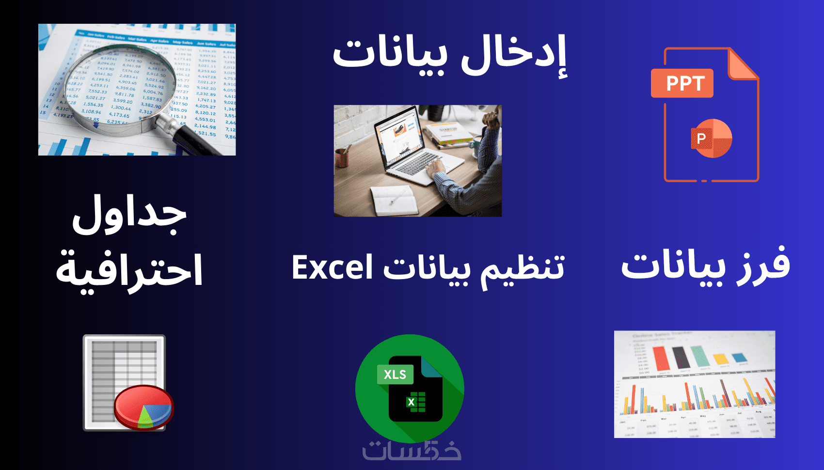إدخال البيانات وتنظيمها في ملفات Excel أو Word أو PPT