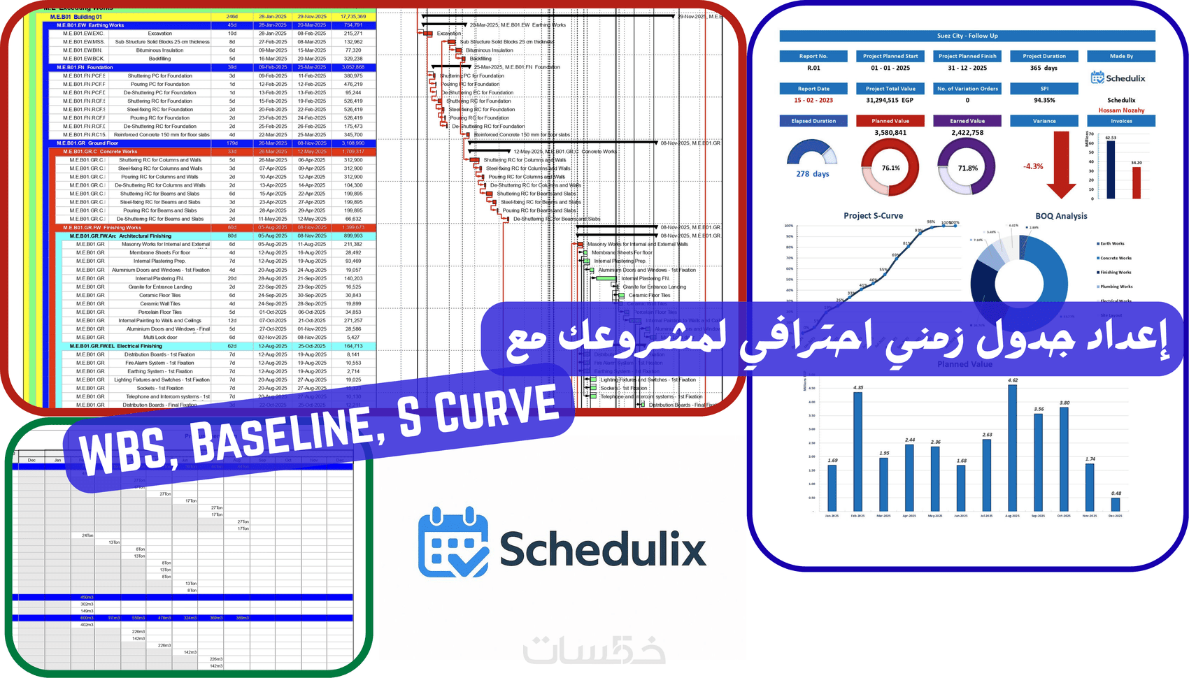إعداد جدول زمني احترافي لمشروعك مع WBS, Baseline, S Curve