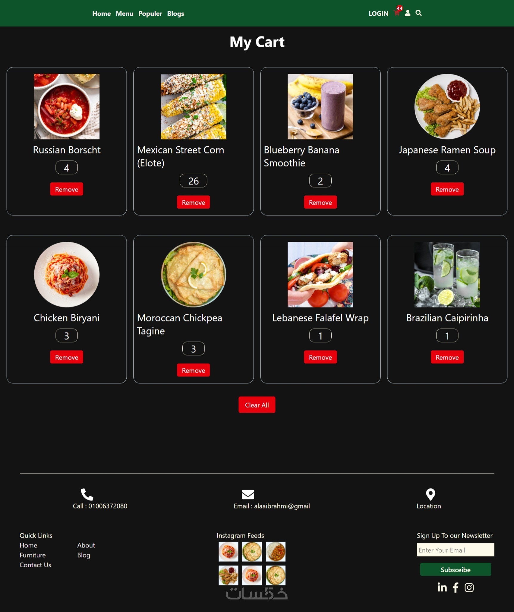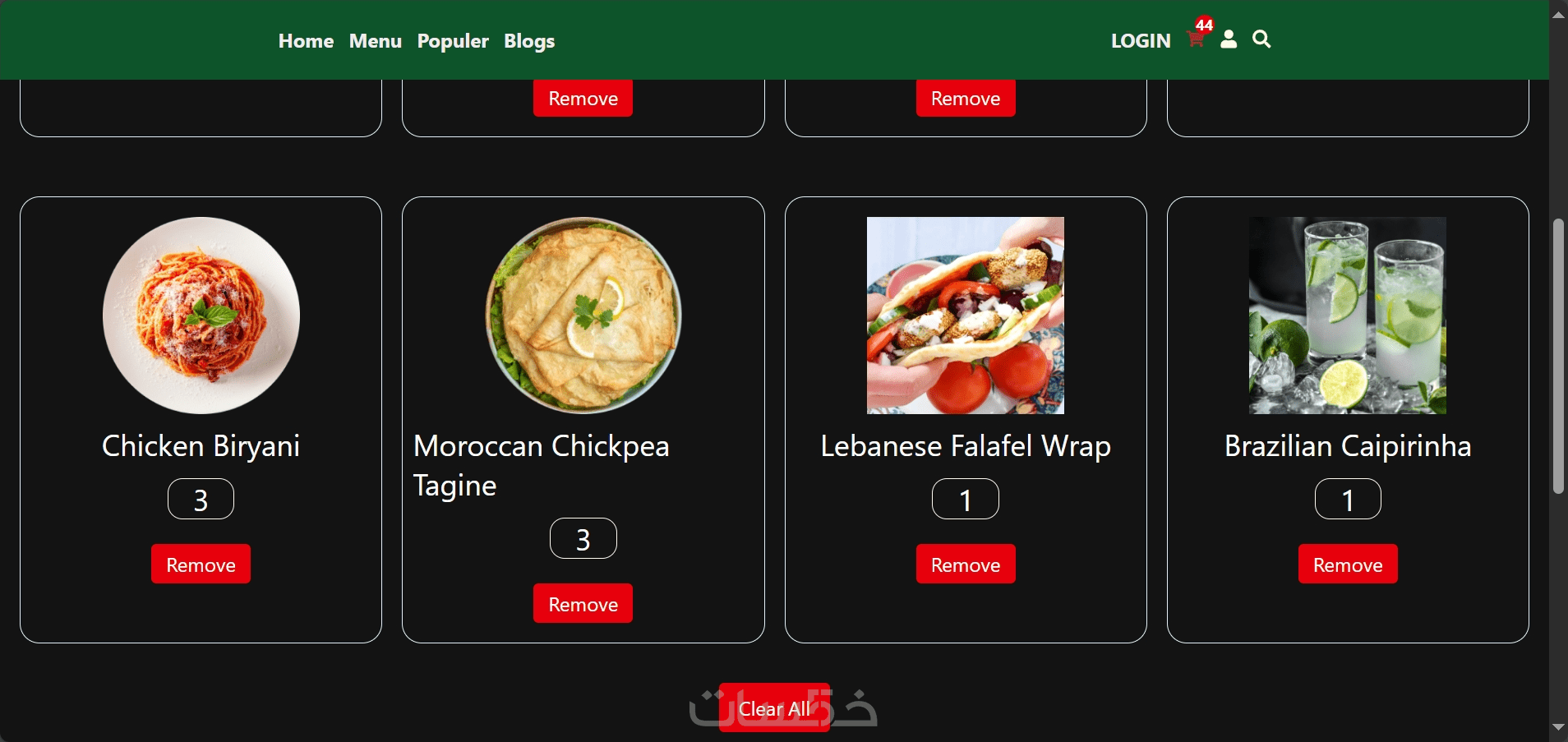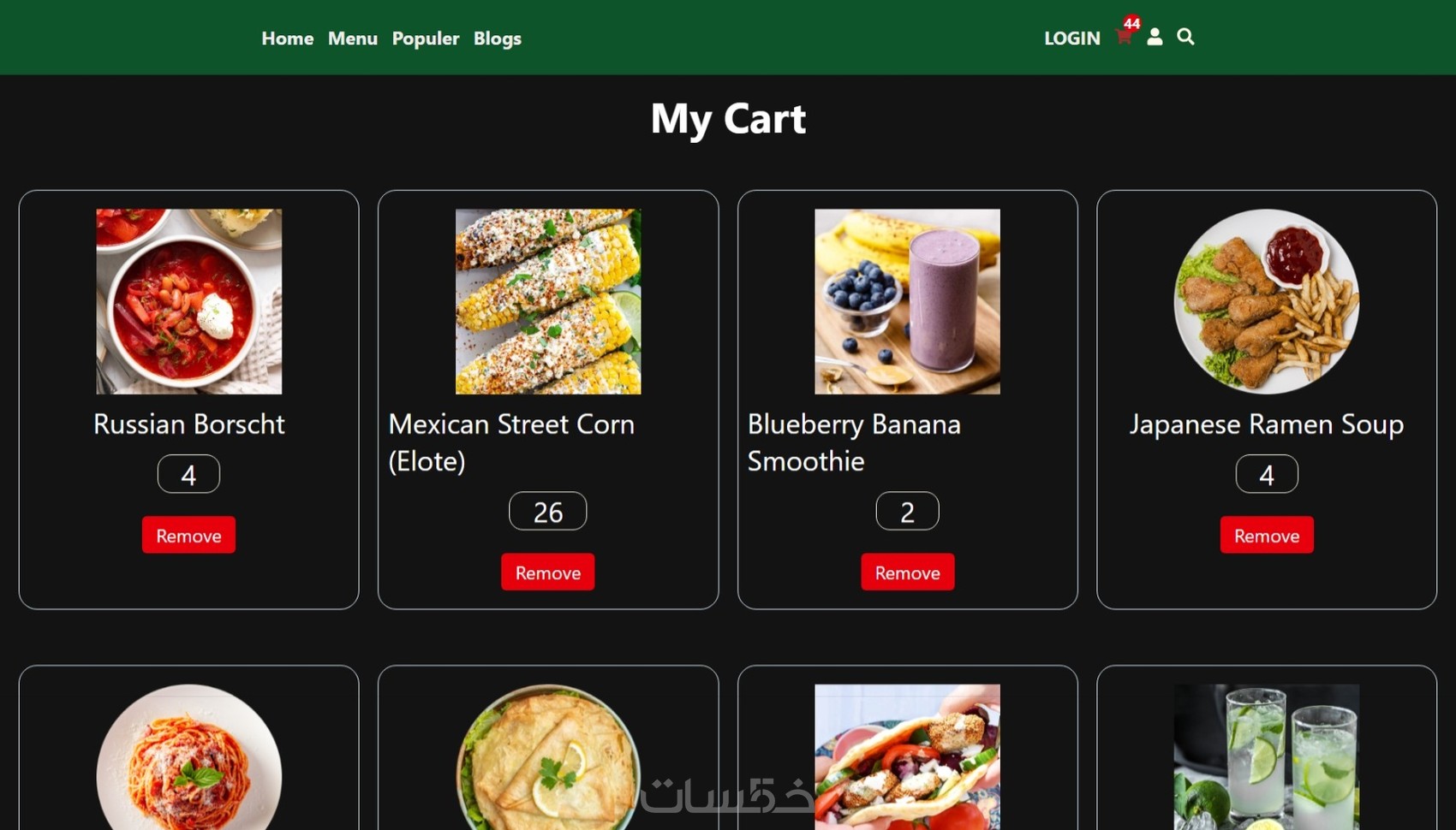تطبيق متجر أكلات React + Redux + API Integration