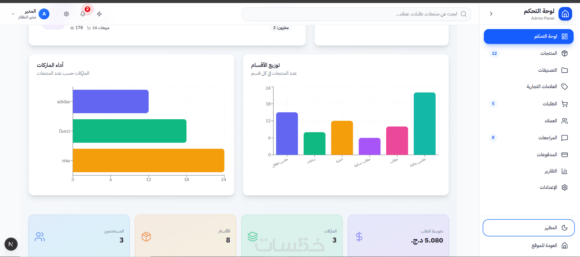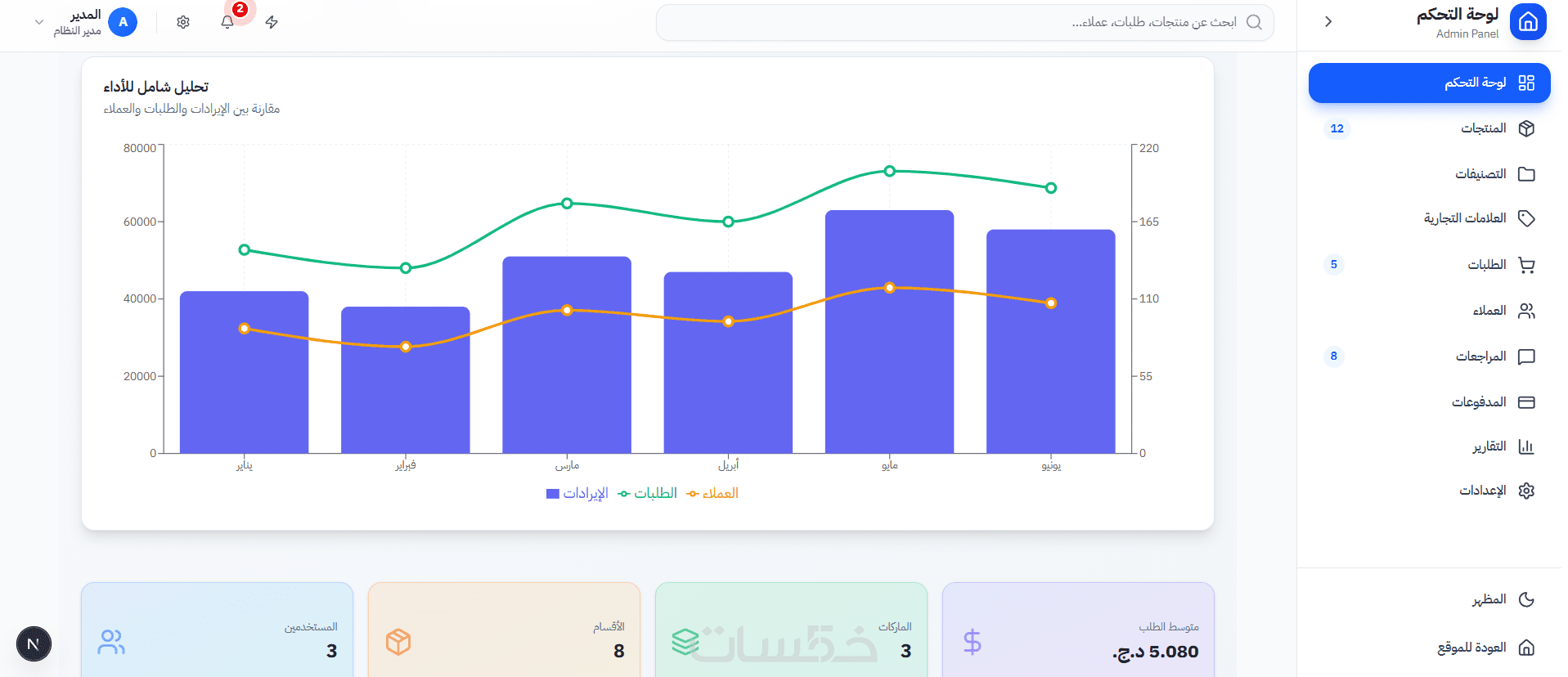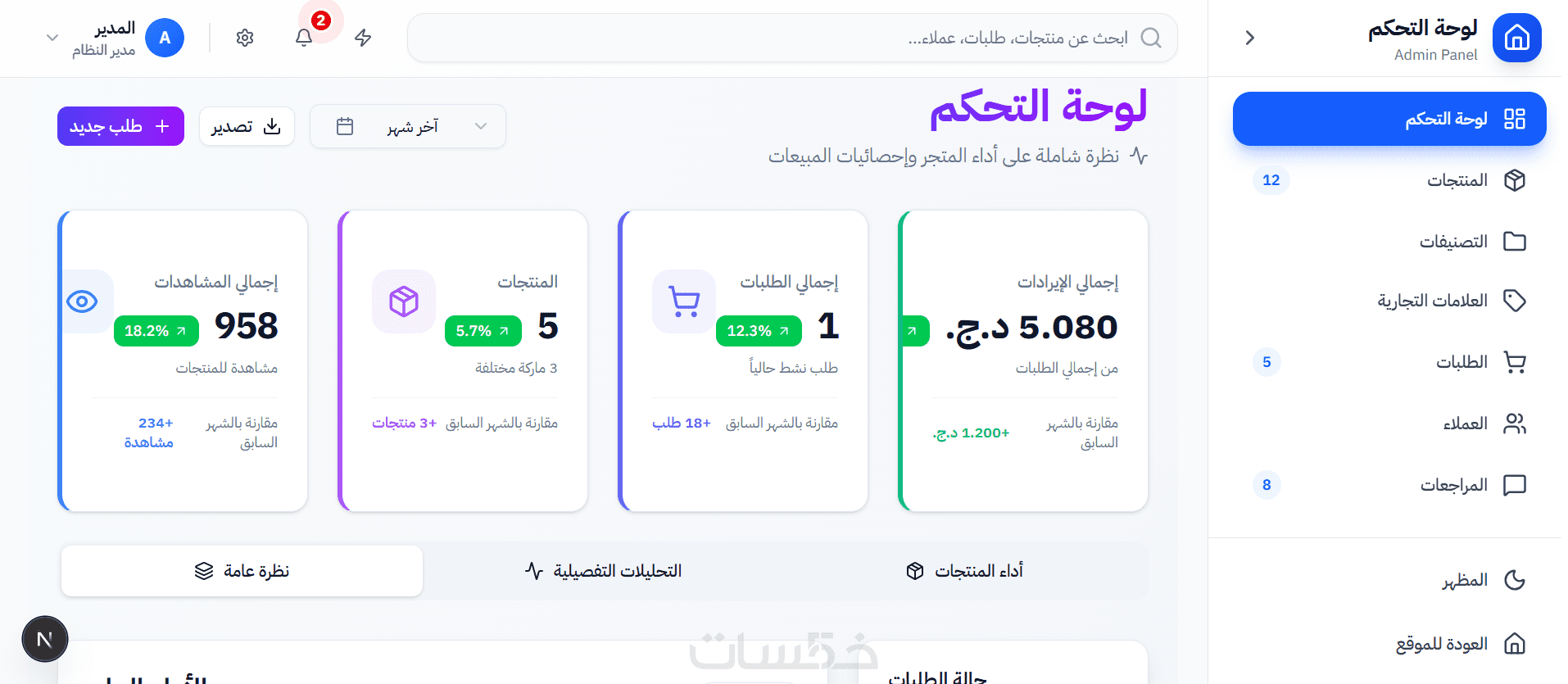تطوير لوحة تحكم dashboard بواجهة أنيقة و سهلة