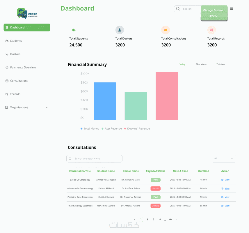 تصميم وتطوير لوحة تحكم (Dashboard) احترافية باستخدام React و
