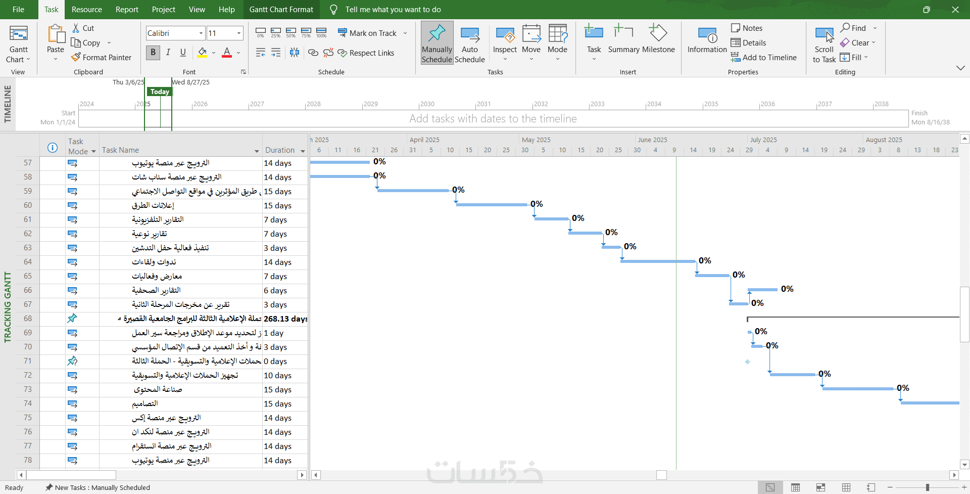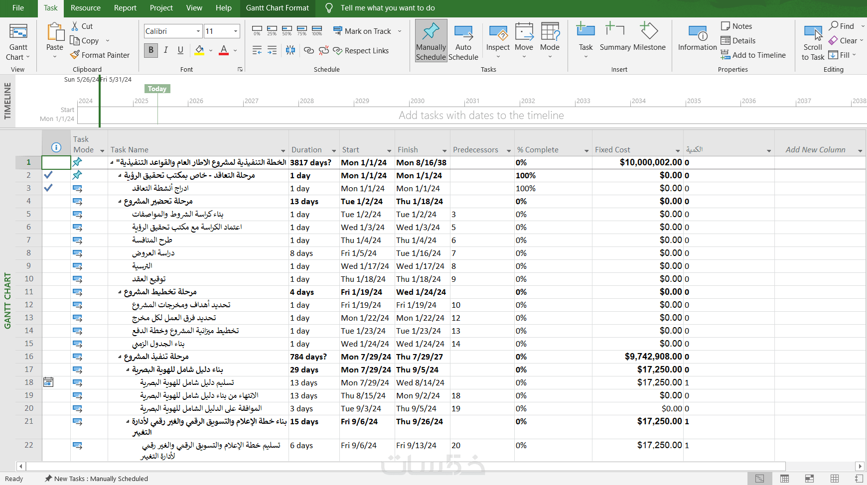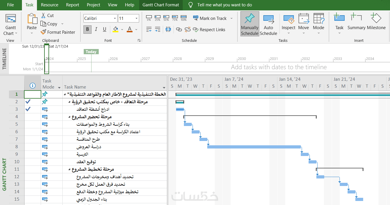 تصميم وإنشاء الجداول الزمنية للمشاريع باستخدام MS Projects