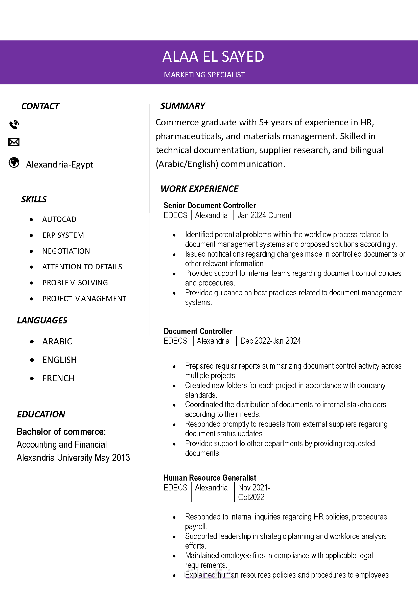 كتابة وتصميم سيرة ذاتية احترافية بالعربية والإنجليزية CV