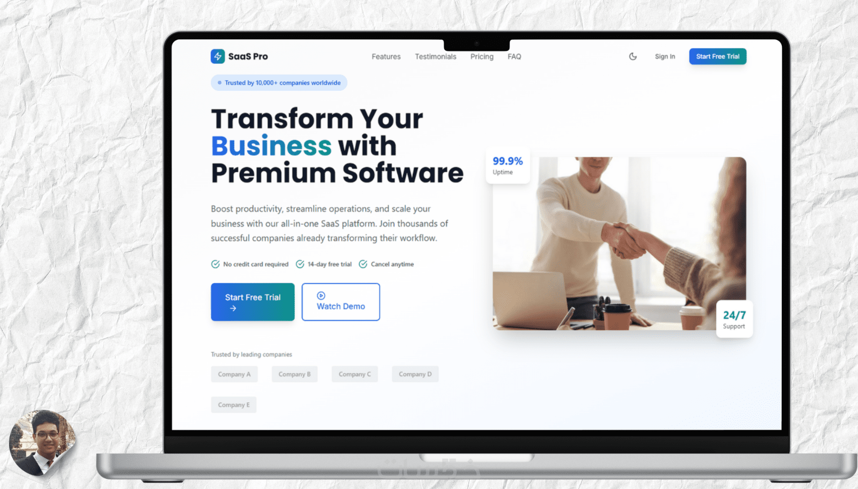 إنشاء قالب صفحة هبوط احترافية بلغة HTML وCSS لمواقع SaaS