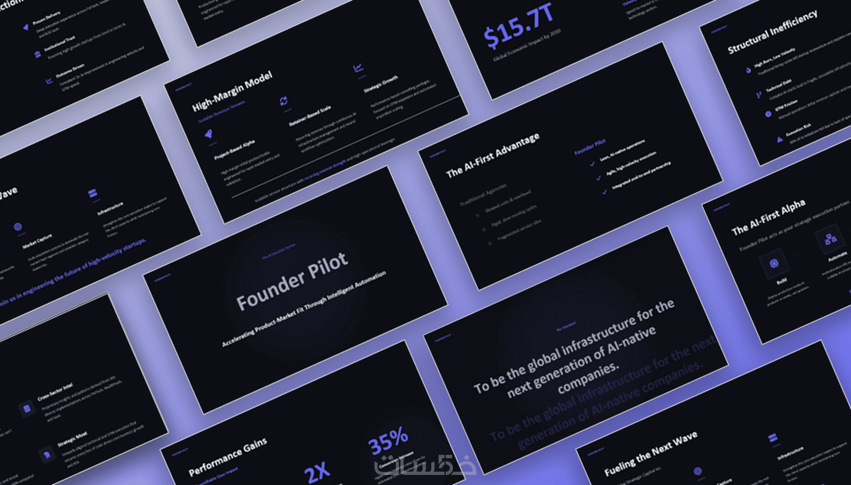 تصميم Pitch Deck استثماري لشركة ناشئة في مجال الذكاء الاصطنا