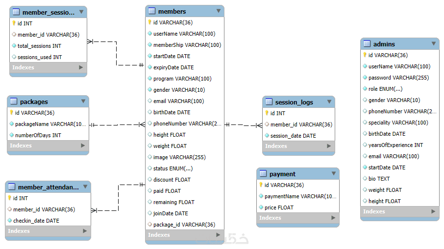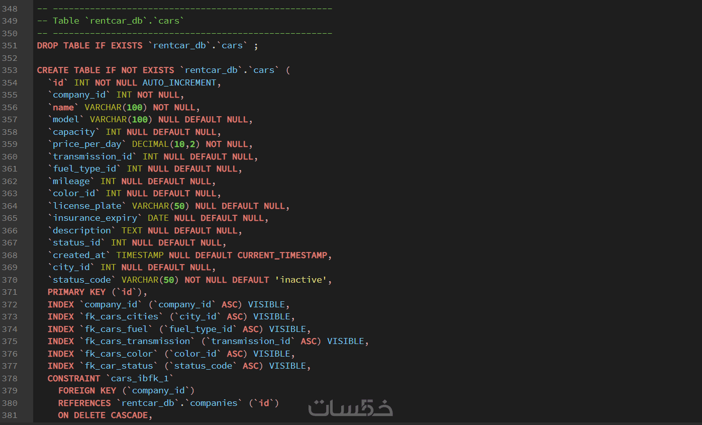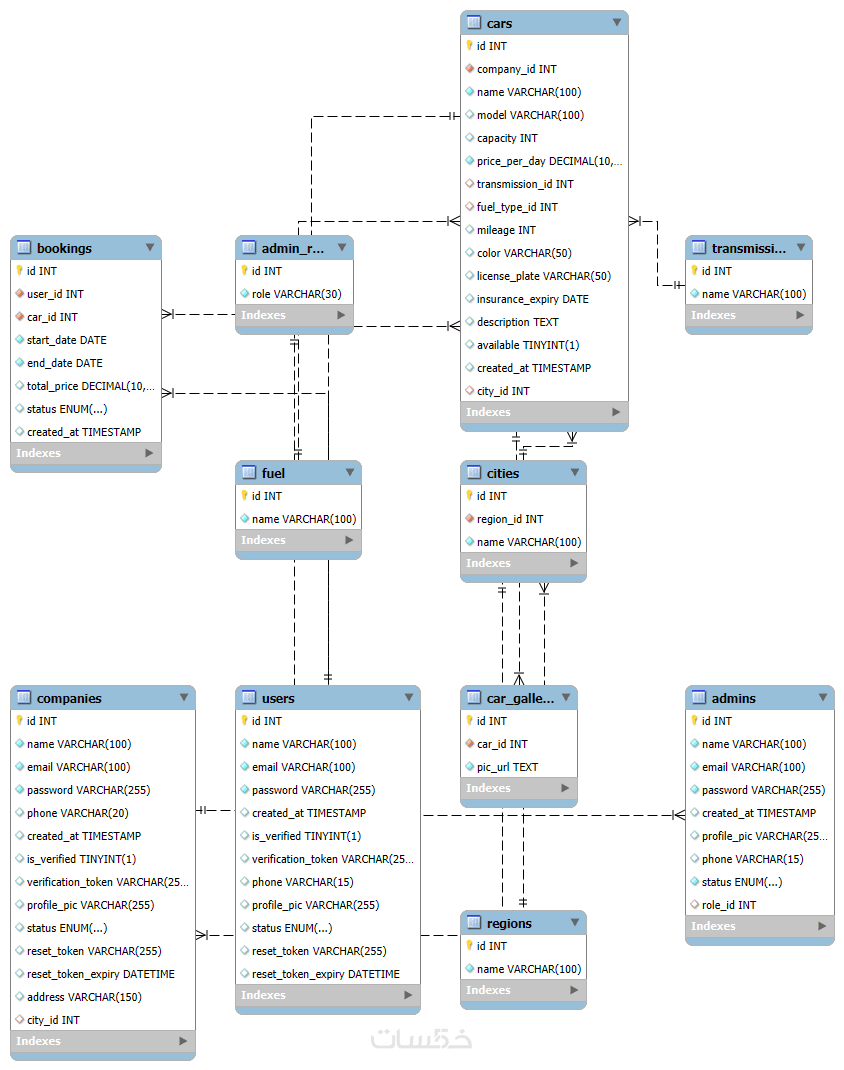 تصميم قاعدة بيانات احترافية MySQL مع العلاقات والتوثيق