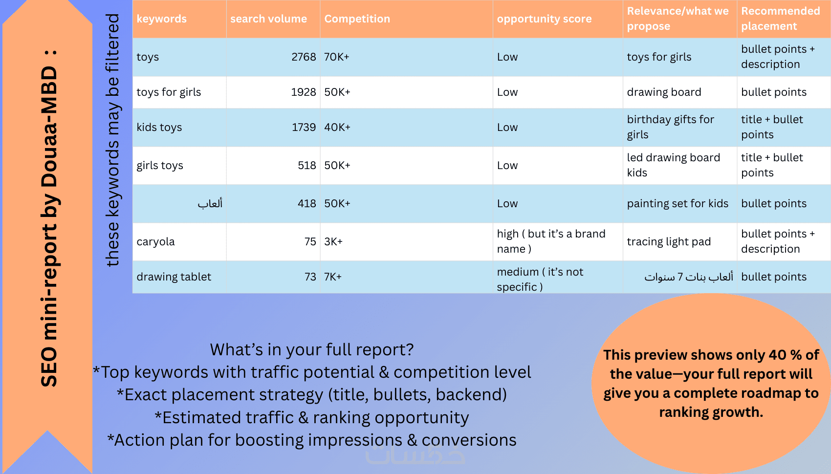 تحسين Listing منتجات أمازون و بحث كلمات مفتاحية احترافي