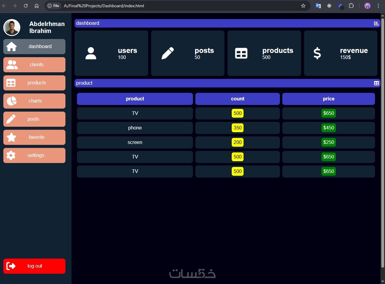 تطوير موقع ويب متكامل باستخدام لغة Javascript