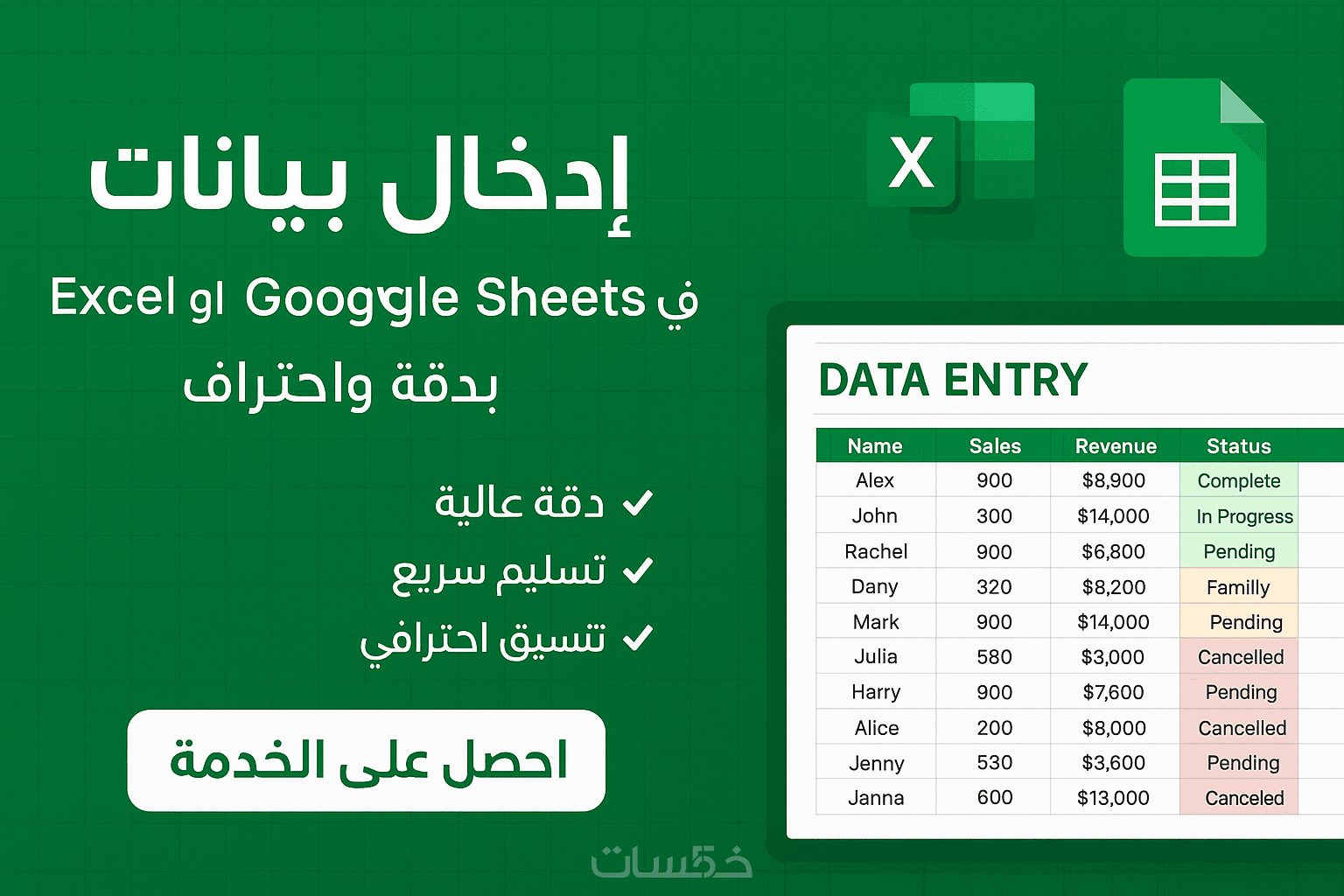 إدخال بيانات احترافي في Excel أو Google Sheets بدقة وسرعة