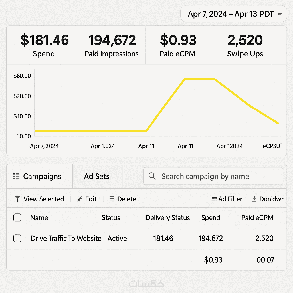 اطلاق حملة Snapchat Ads + ربط البكسل + مراقبة اداء الحملة وت