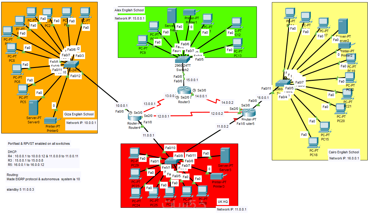 تصميم جميع الشبكات باستخدام packet tracer و GNS3