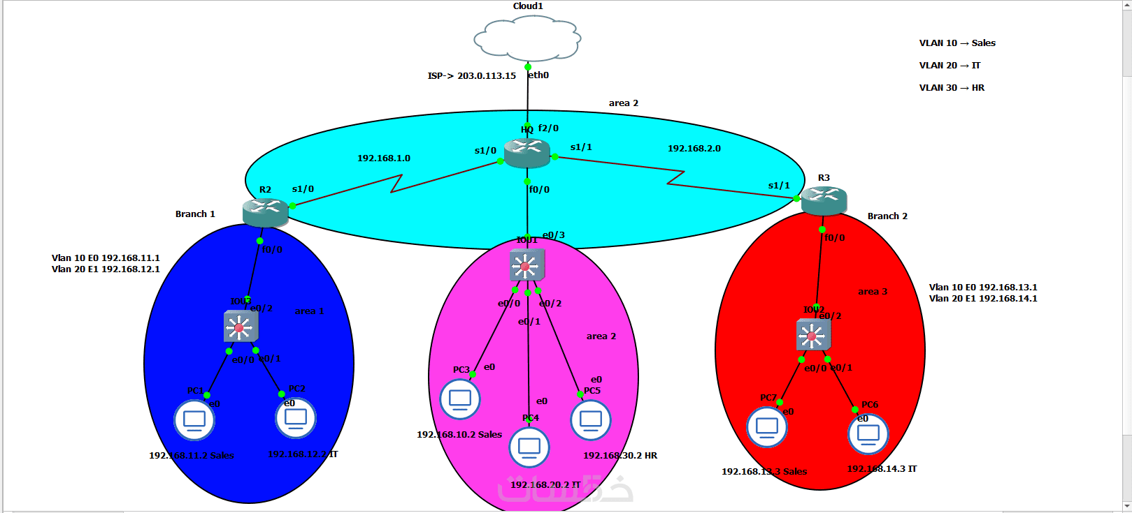 تصميم وتأسيس شبكة شركات احترافية على eNSP