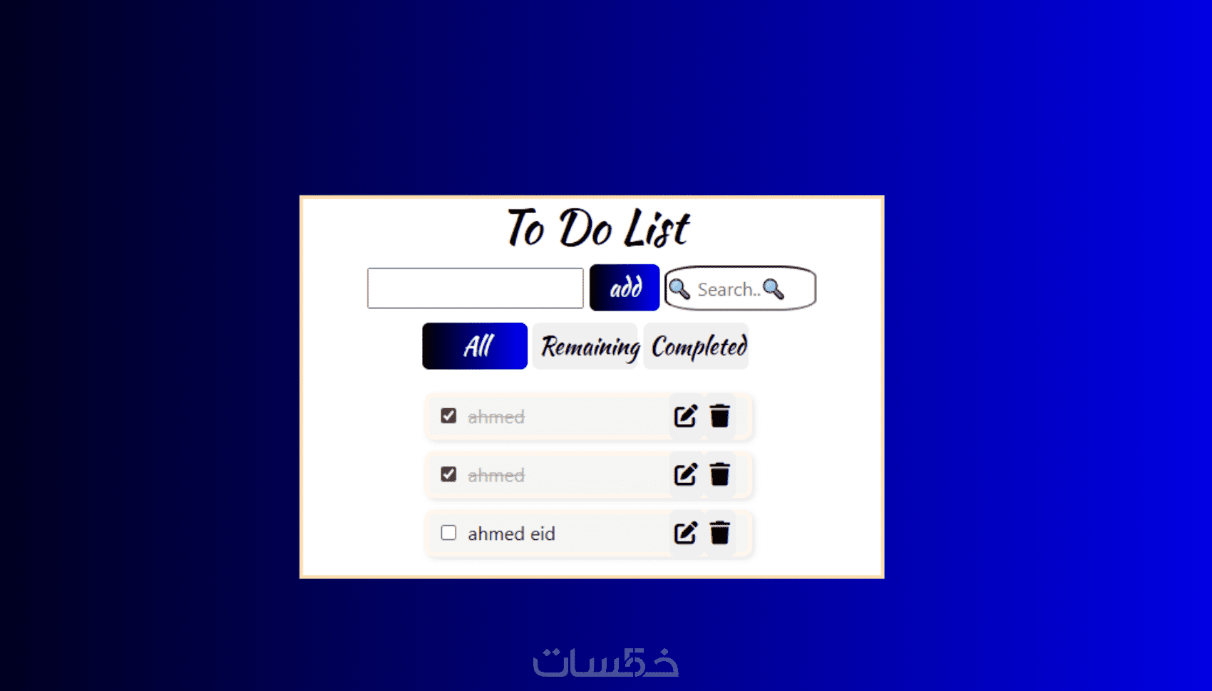 تصميم تطبيق To-Do List احترافي بإستخدام HTML, CSS, JavaScrip