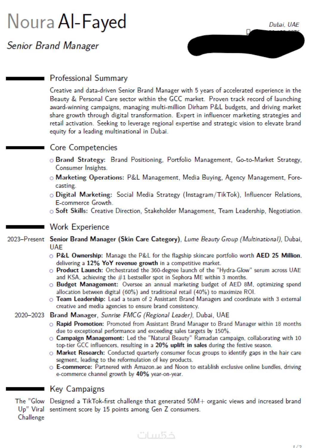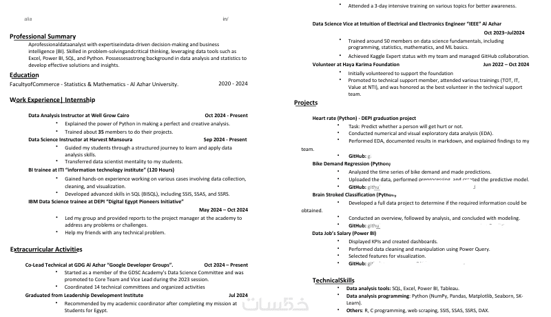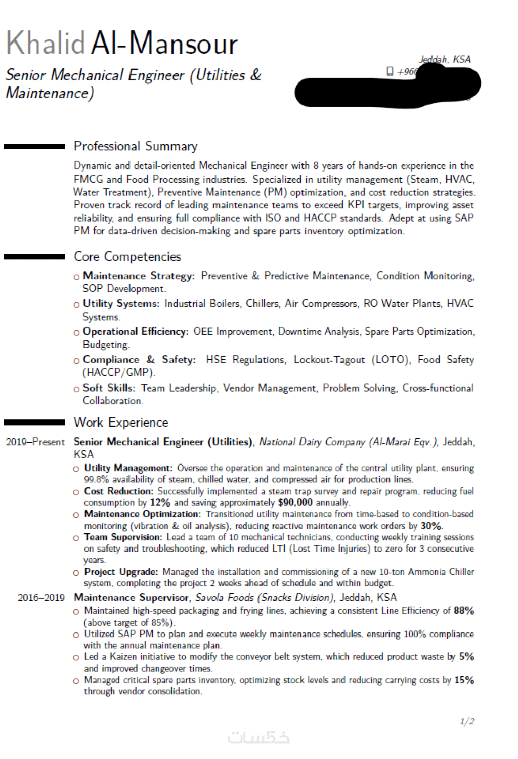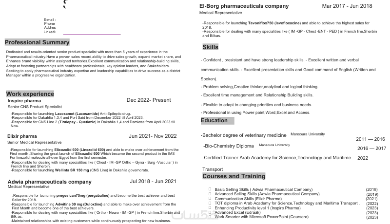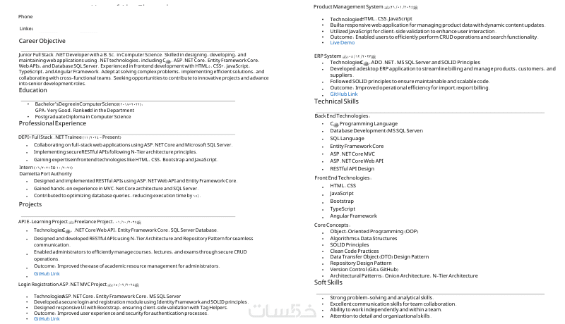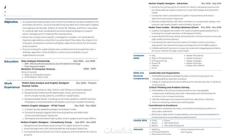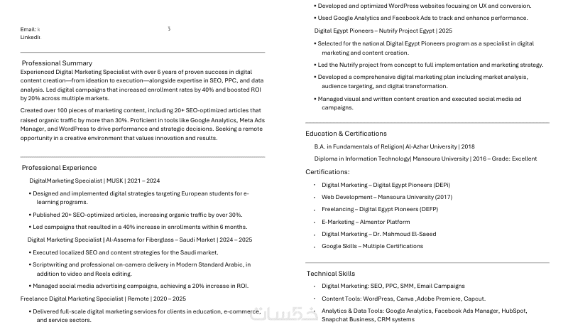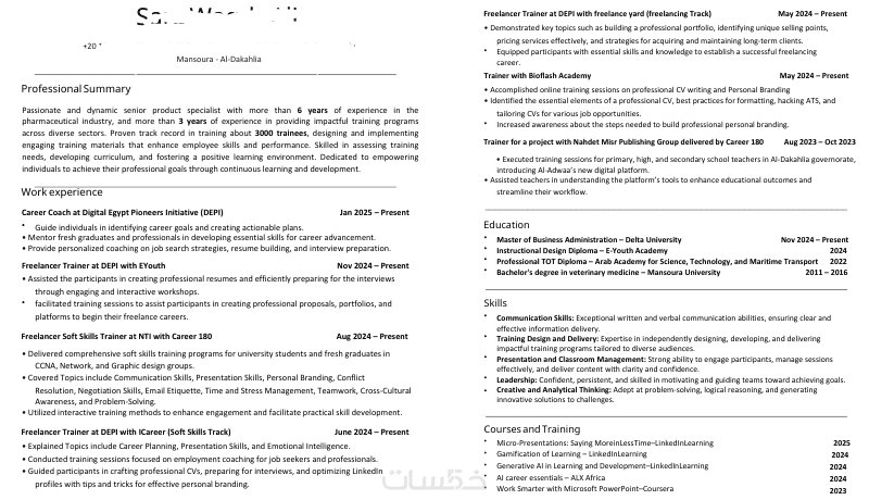 سيرة ذاتية احترافية بالعربية والإنجليزية متوافقة مع نظام A