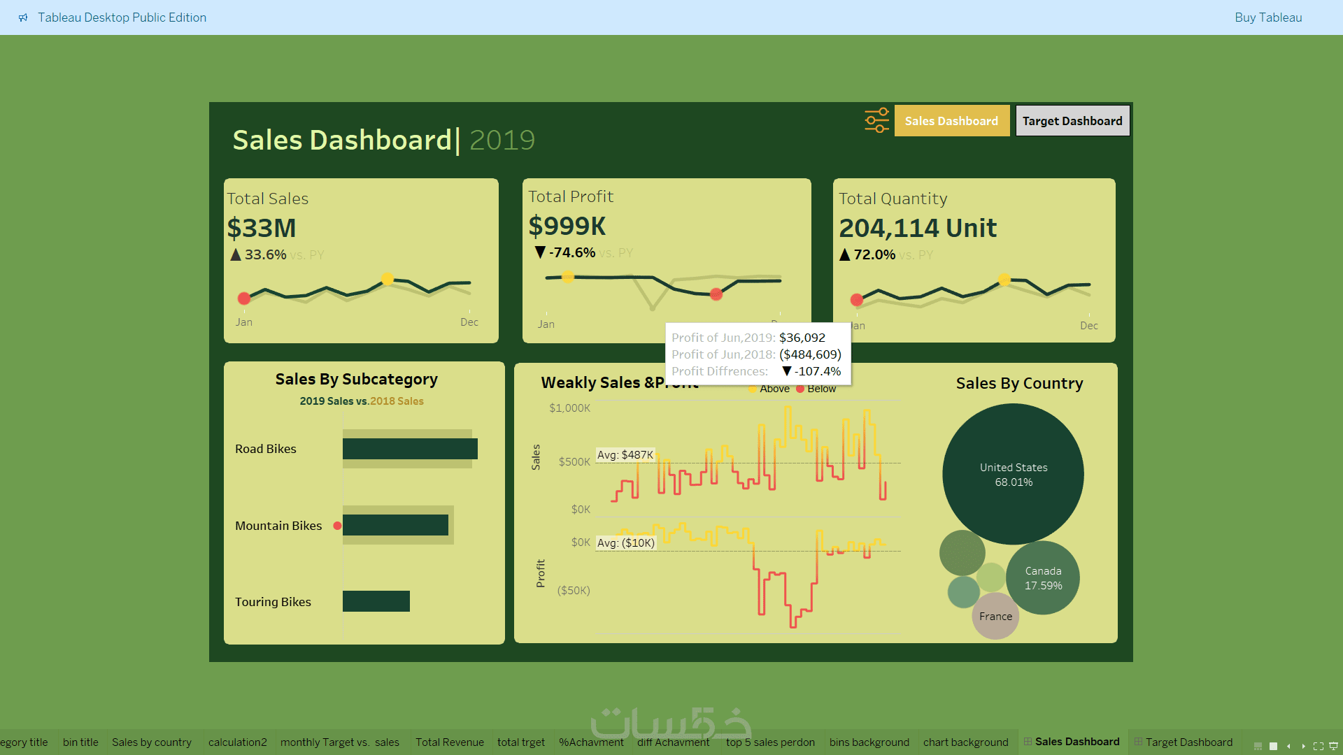 لوحة تفاعلية داشبورد باستخدام تابلوه tableau