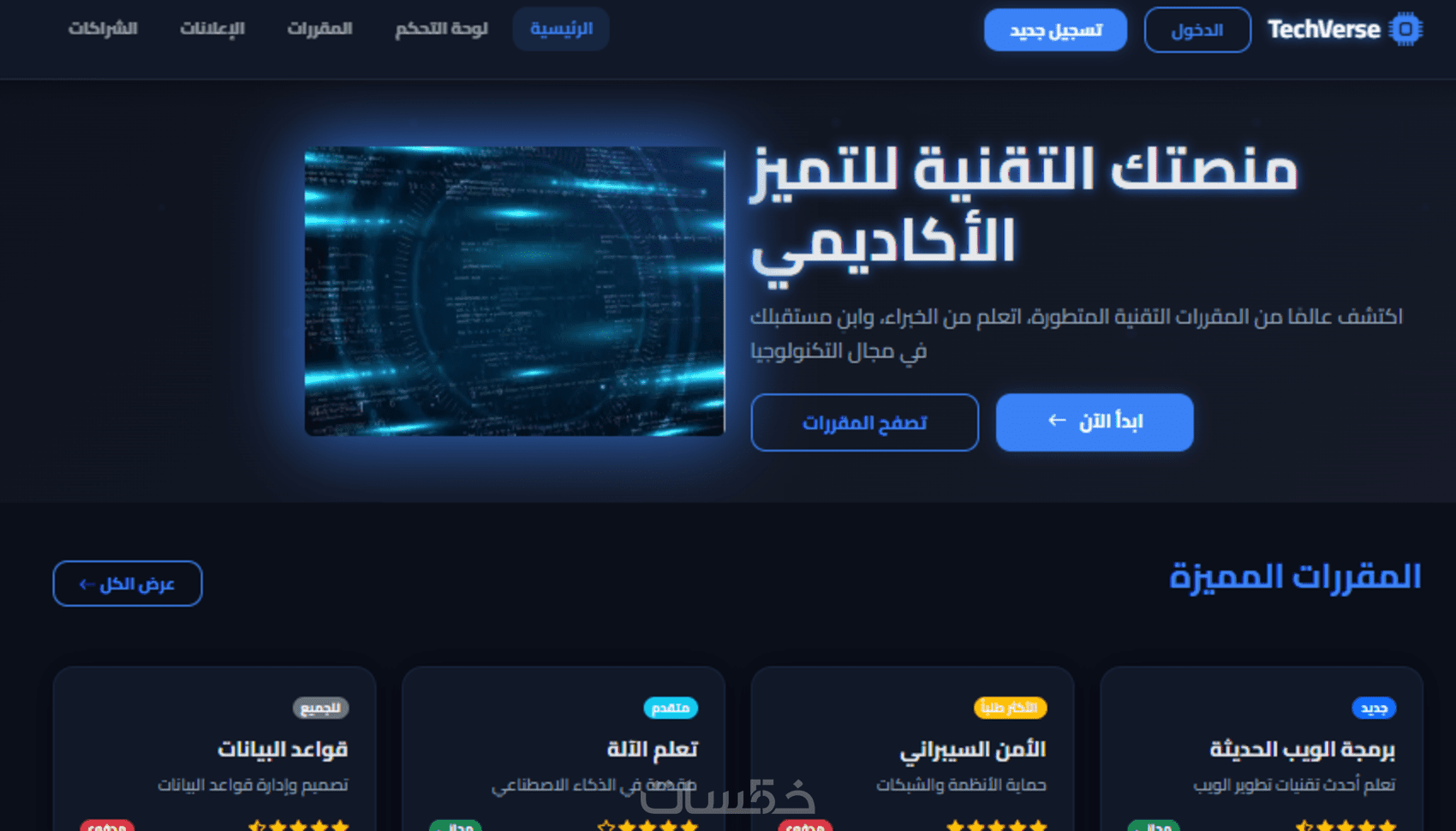 إنشاء منصة تعليمية تقنية متكاملة مثل TechVerse مع لوحة تحكم
