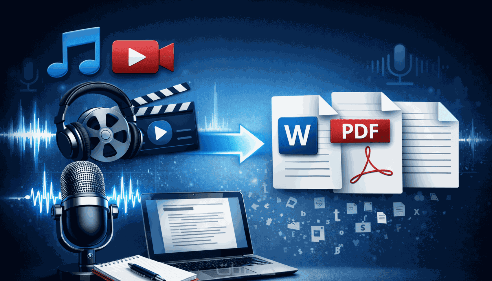 تفريغ اي ملف صوتي او فيديوهات الى نص Word او Text او PDF