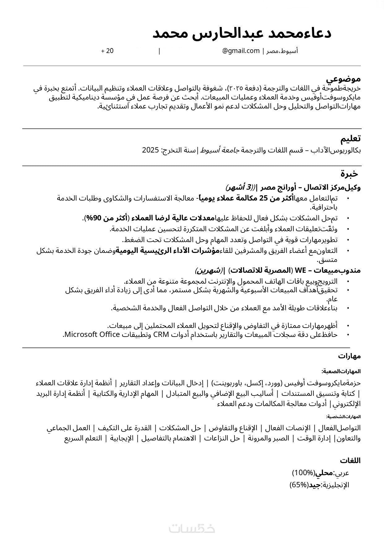 تصميم سيرة ذاتية CV احترافية مع تطوير نظام ATS لضمان قبولك