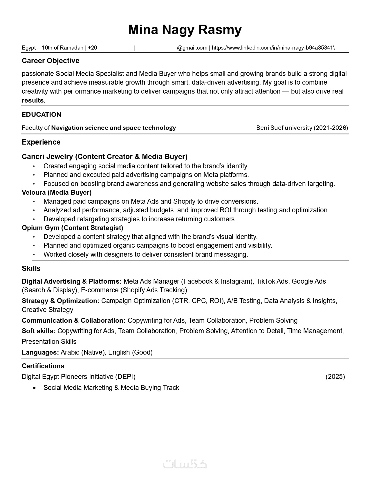 تصميم وتحسين سيرة ذاتية احترافية متوافقة مع معايير الـ ATS