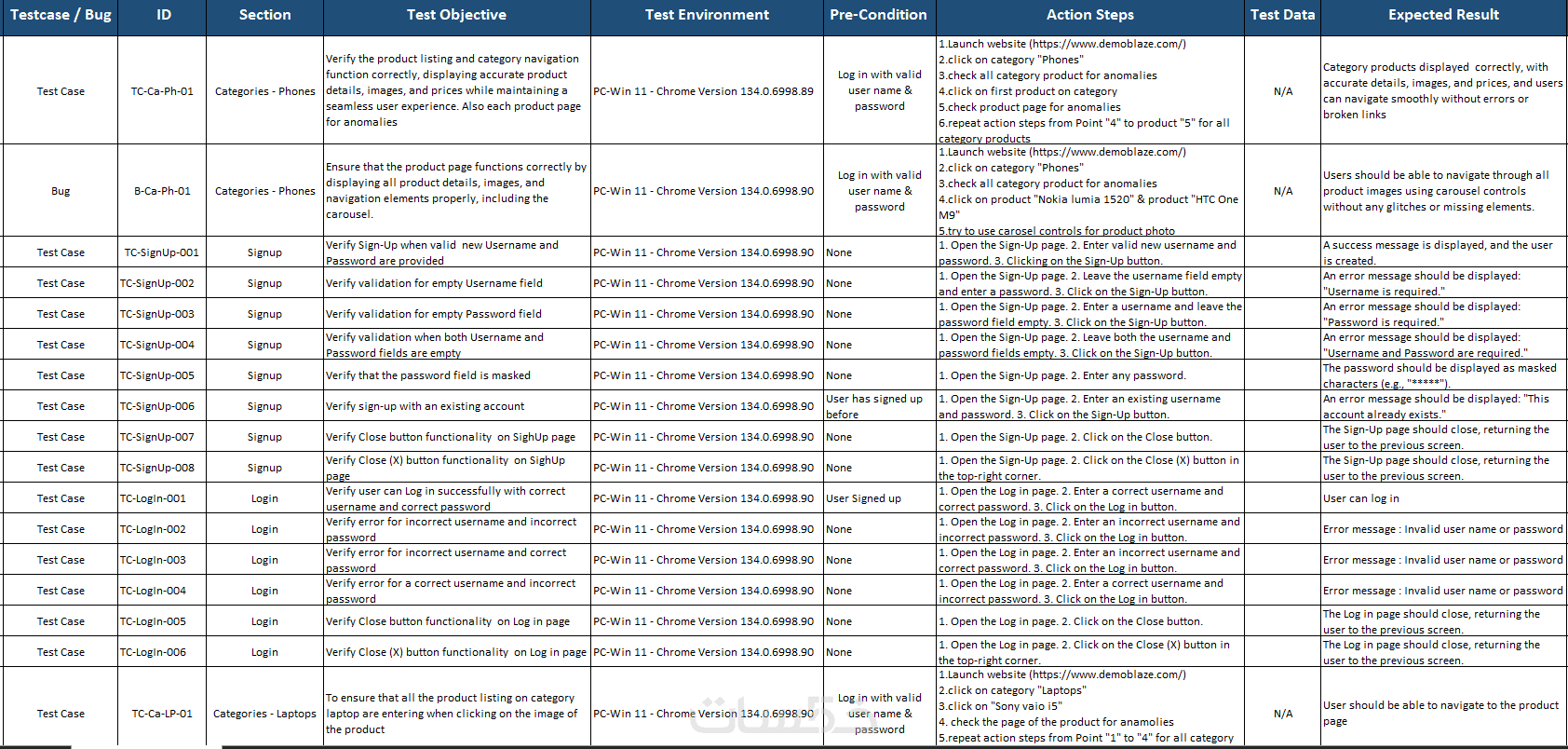 اختبار شامل لمواقع الويب يدوي اليmanual/Automation test