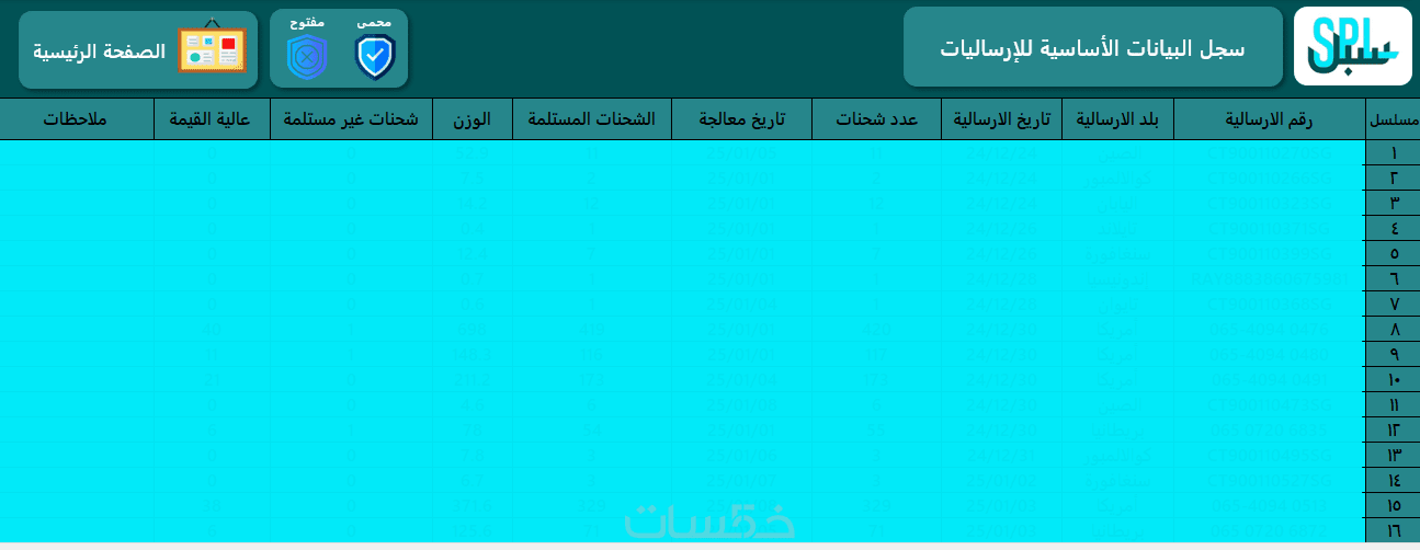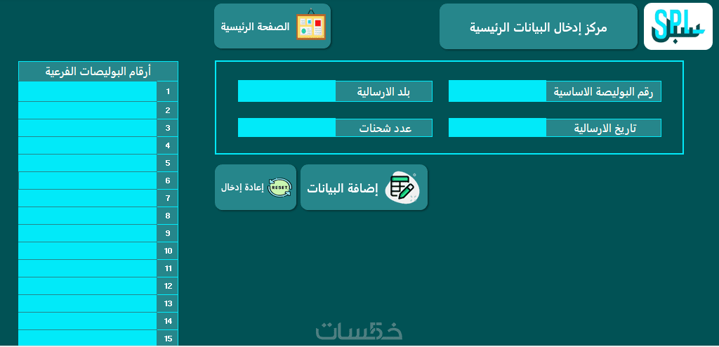 برنامج اكسل مكون من شيتات إدخال وسجلات وإحصائيات