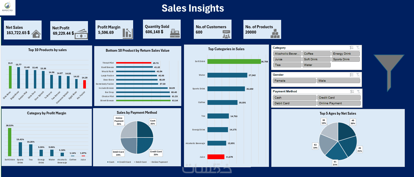 محلل بيانات محترف تقارير لوحات معلومات تحليل مبيعات