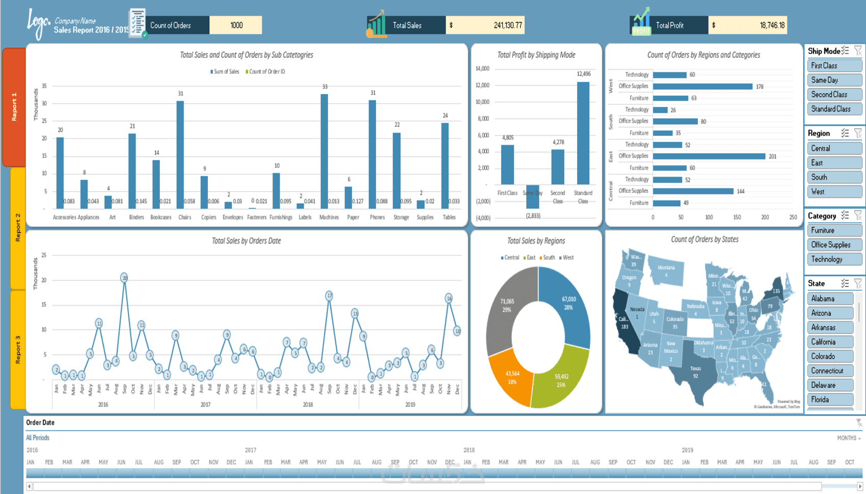 تصميم داشبورد تفاعلي على Excel لتحليل المبيعات والبيانات