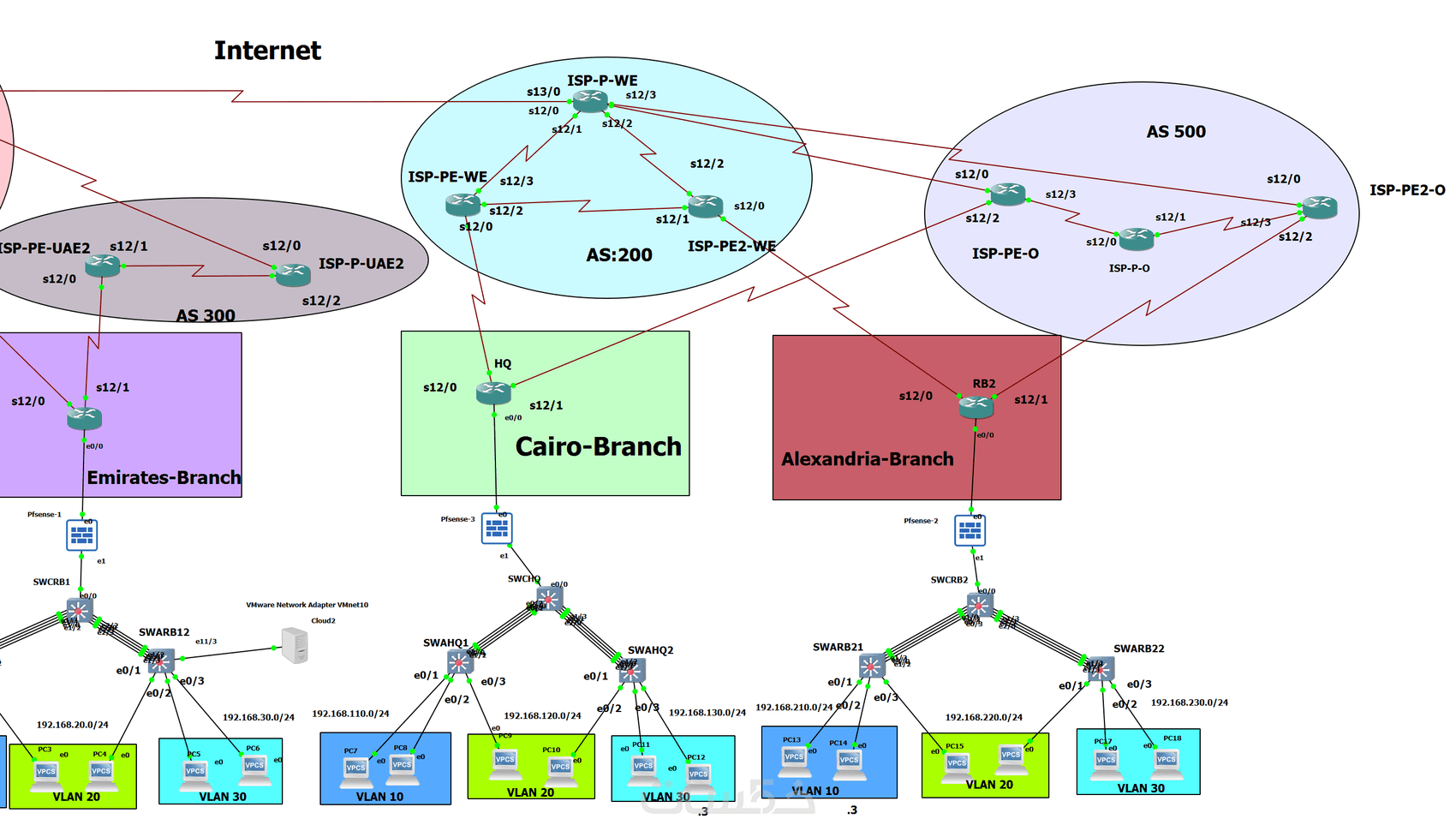 تصميم وبرمجة مشاريع الشبكات على cisco packet tracer gns3