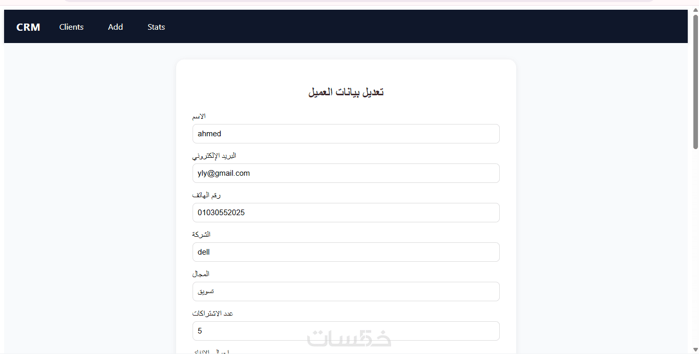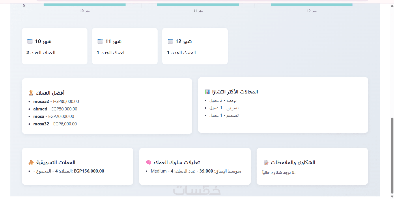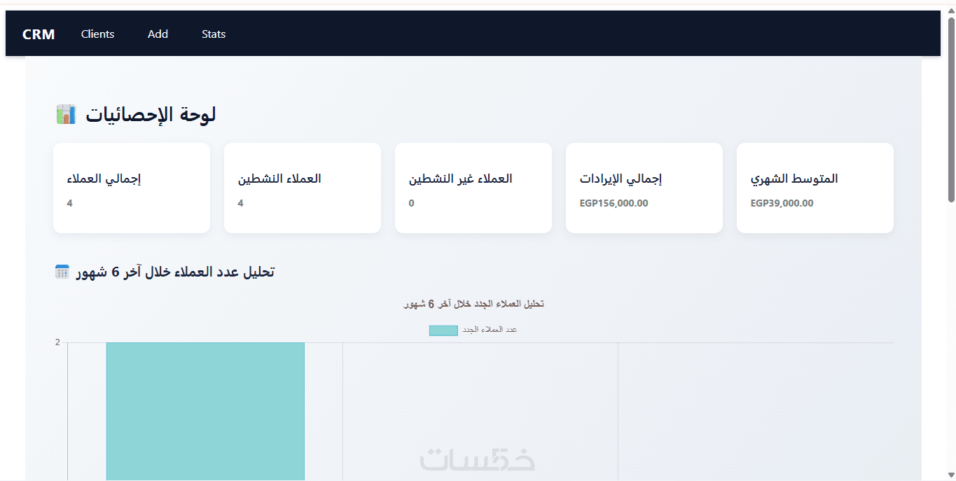نظام CRM كامل لإدارة العملاء وتحليل البيانات شهرياFull Stack
